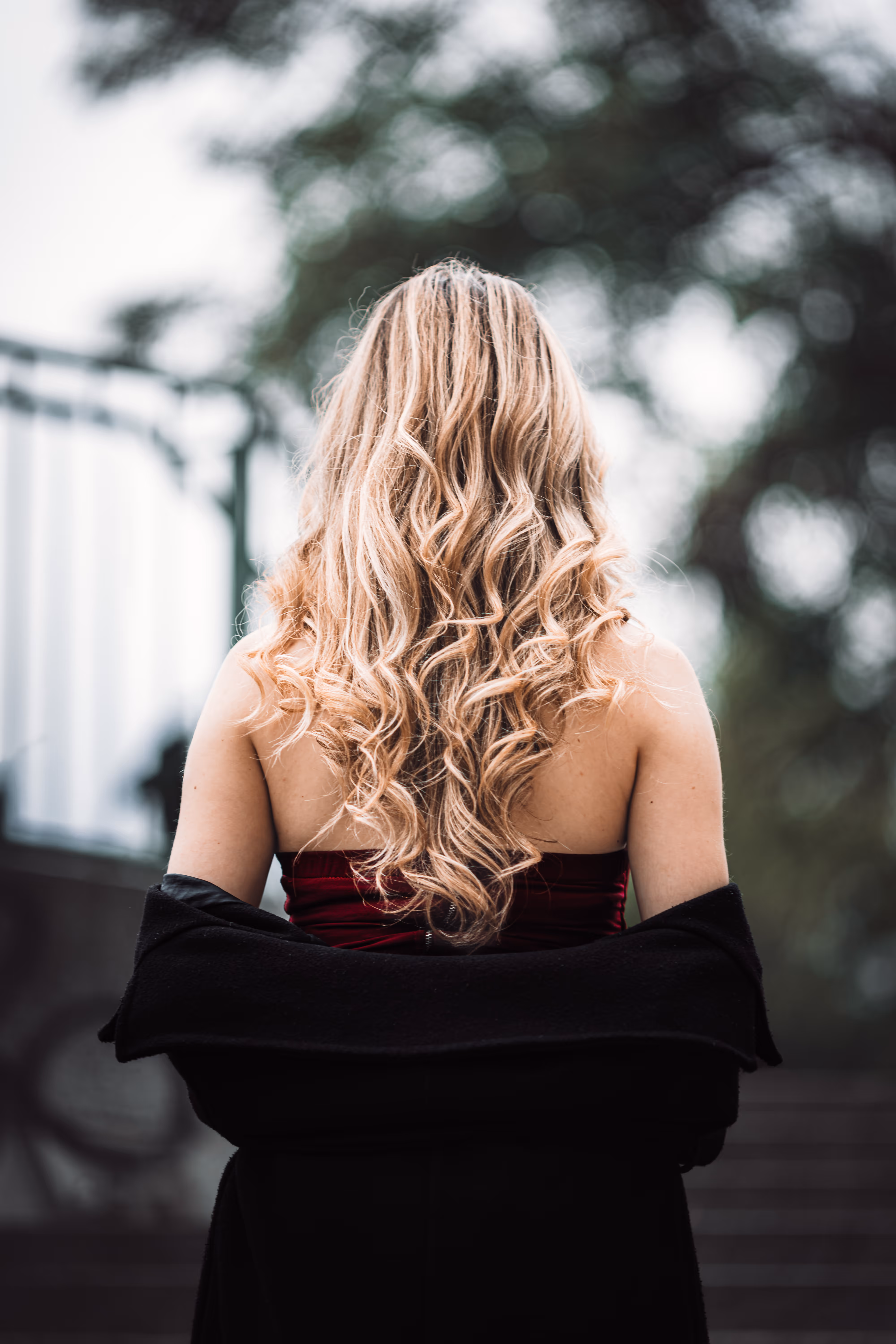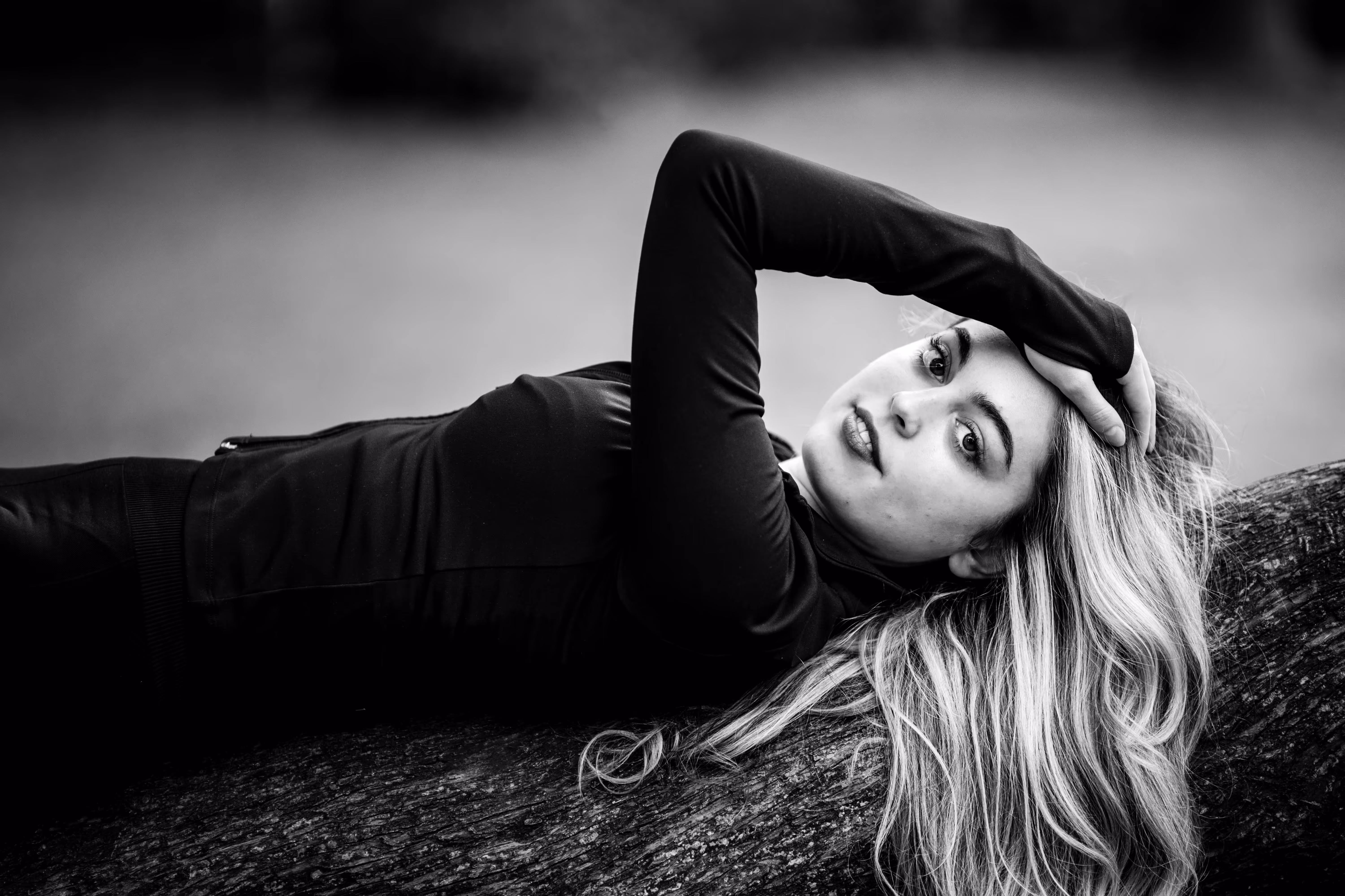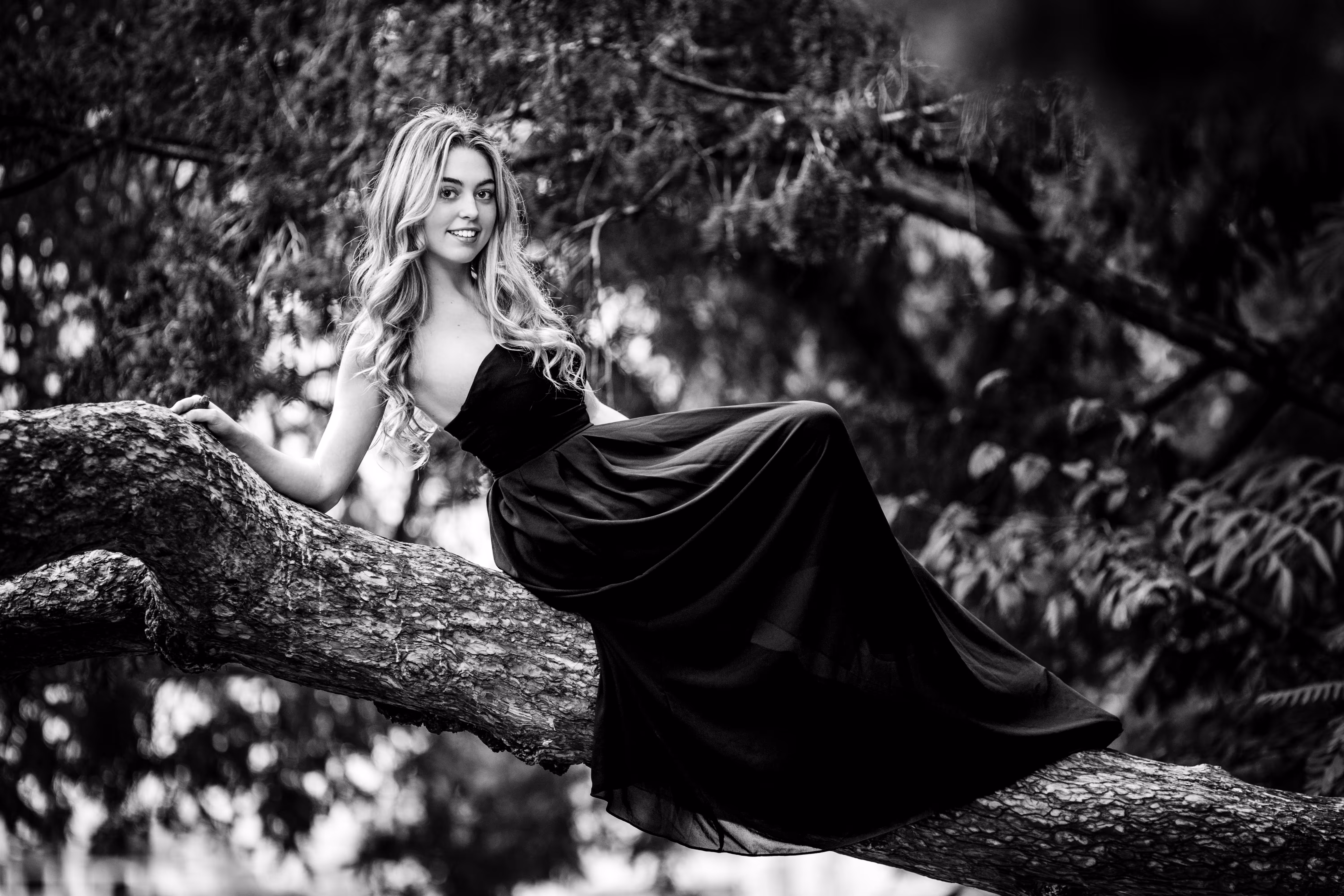 Die Schwarz-Weiß-Version hingegen ist eine völlig andere Welt. Der “Wow-Effekt” der roten Farbe fehlt, aber dafür gewinnen Texturen und Lichtführung eine immense Bedeutung. Man achtet auf das weiche Licht auf Valentinas Haut, die raue Rinde des Baumes und die Falten des Kleides. Das Porträt wird ruhiger, dramatischer und viel stärker auf die Person und die sie umgebende Struktur fokussiert.