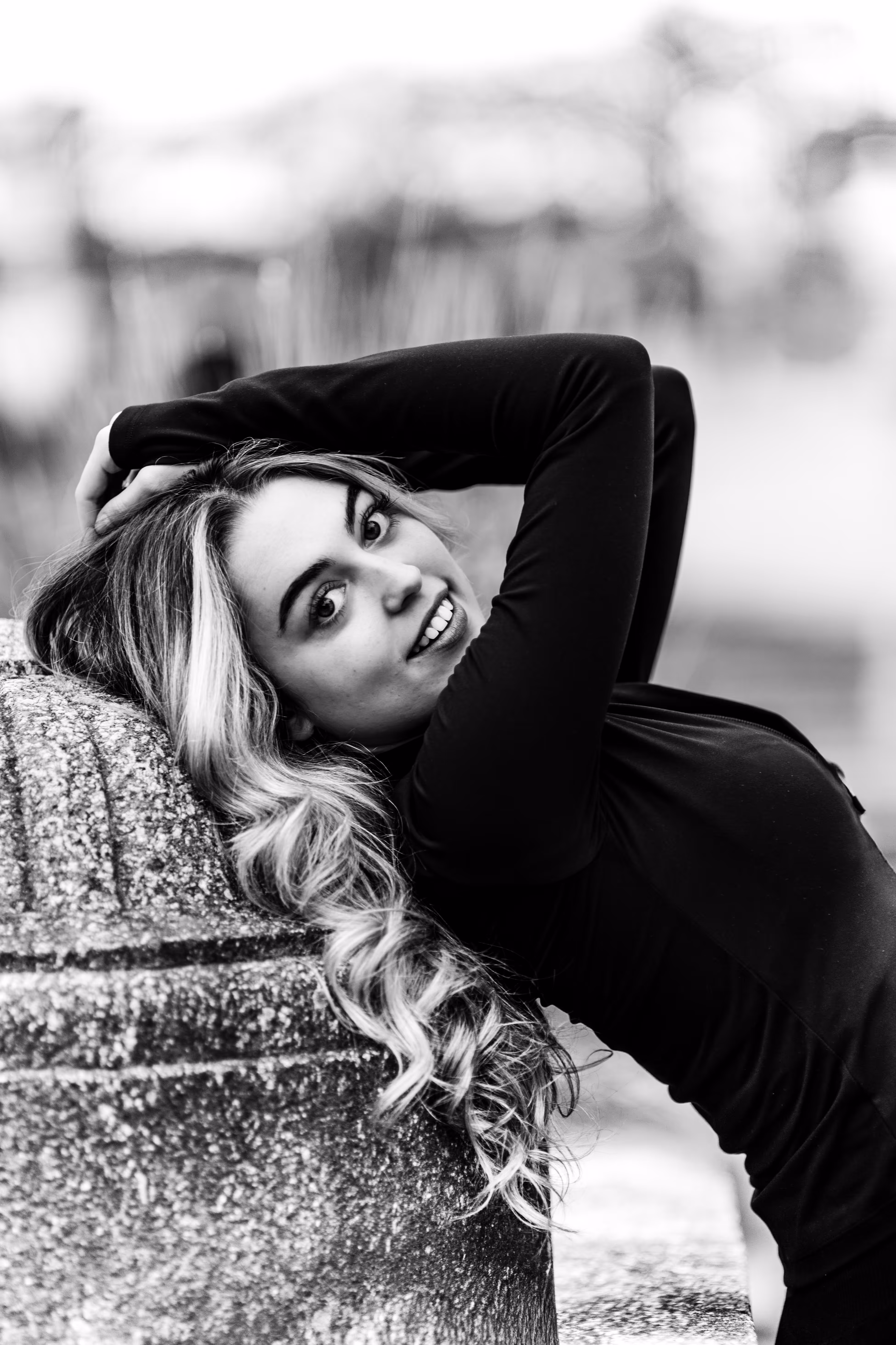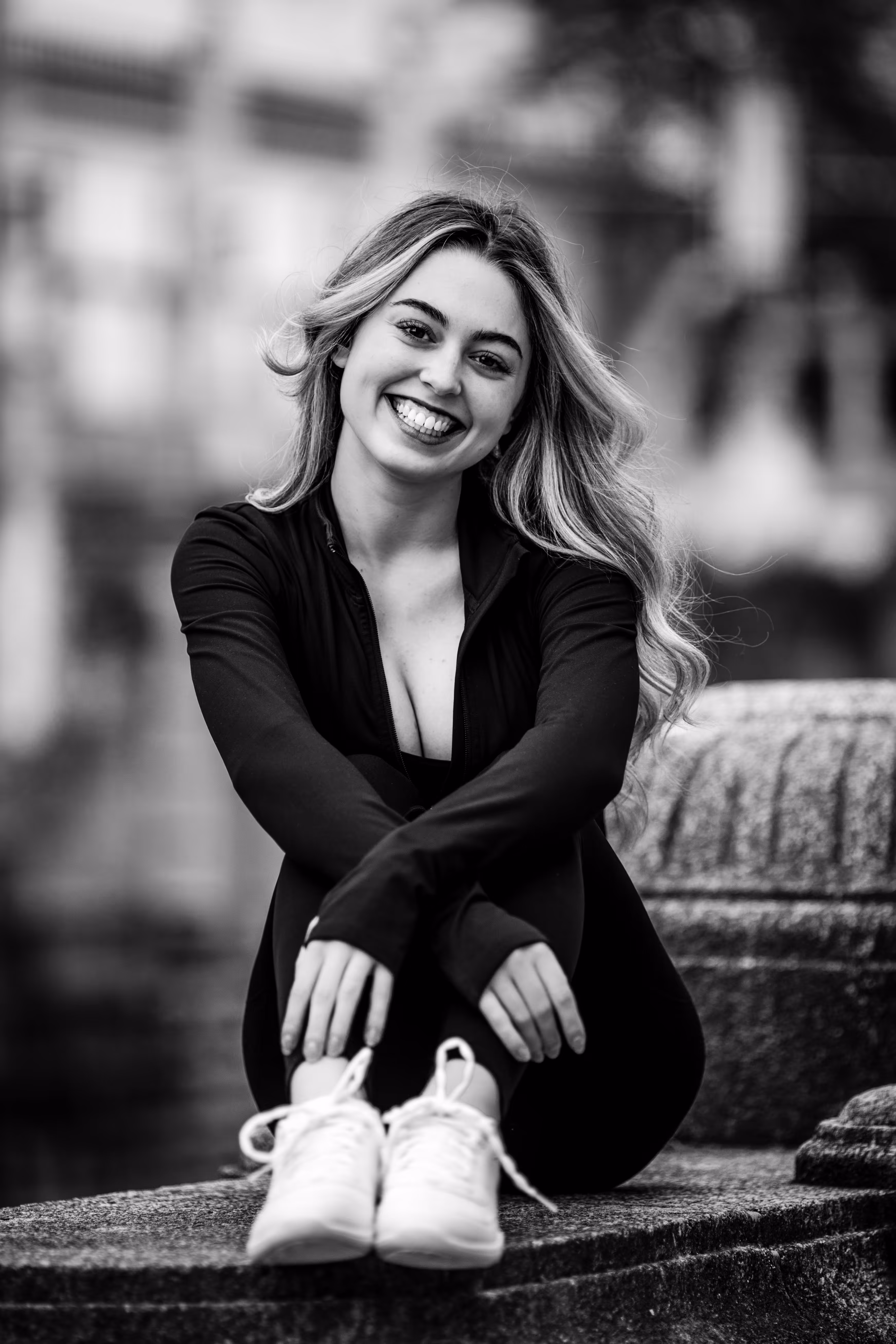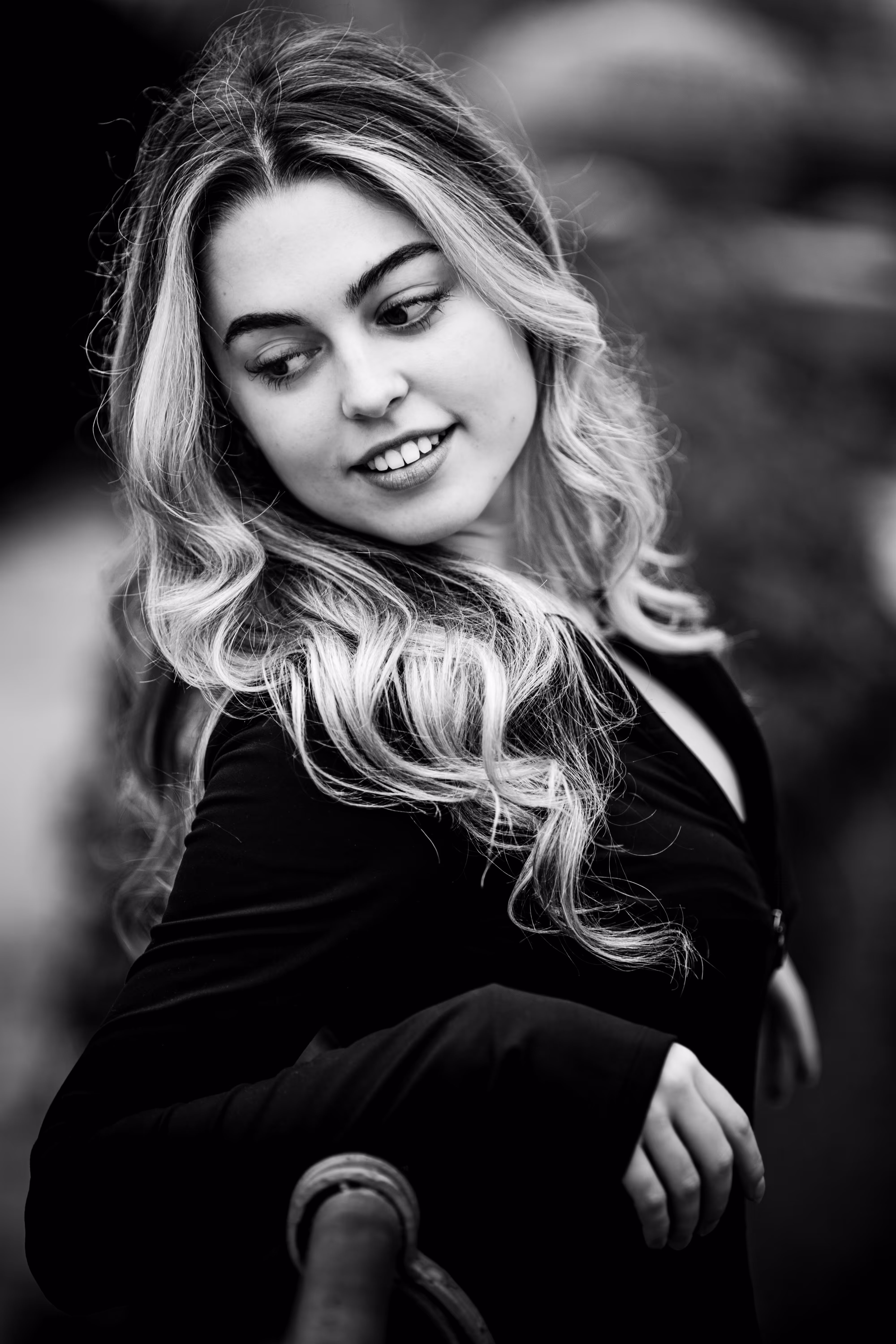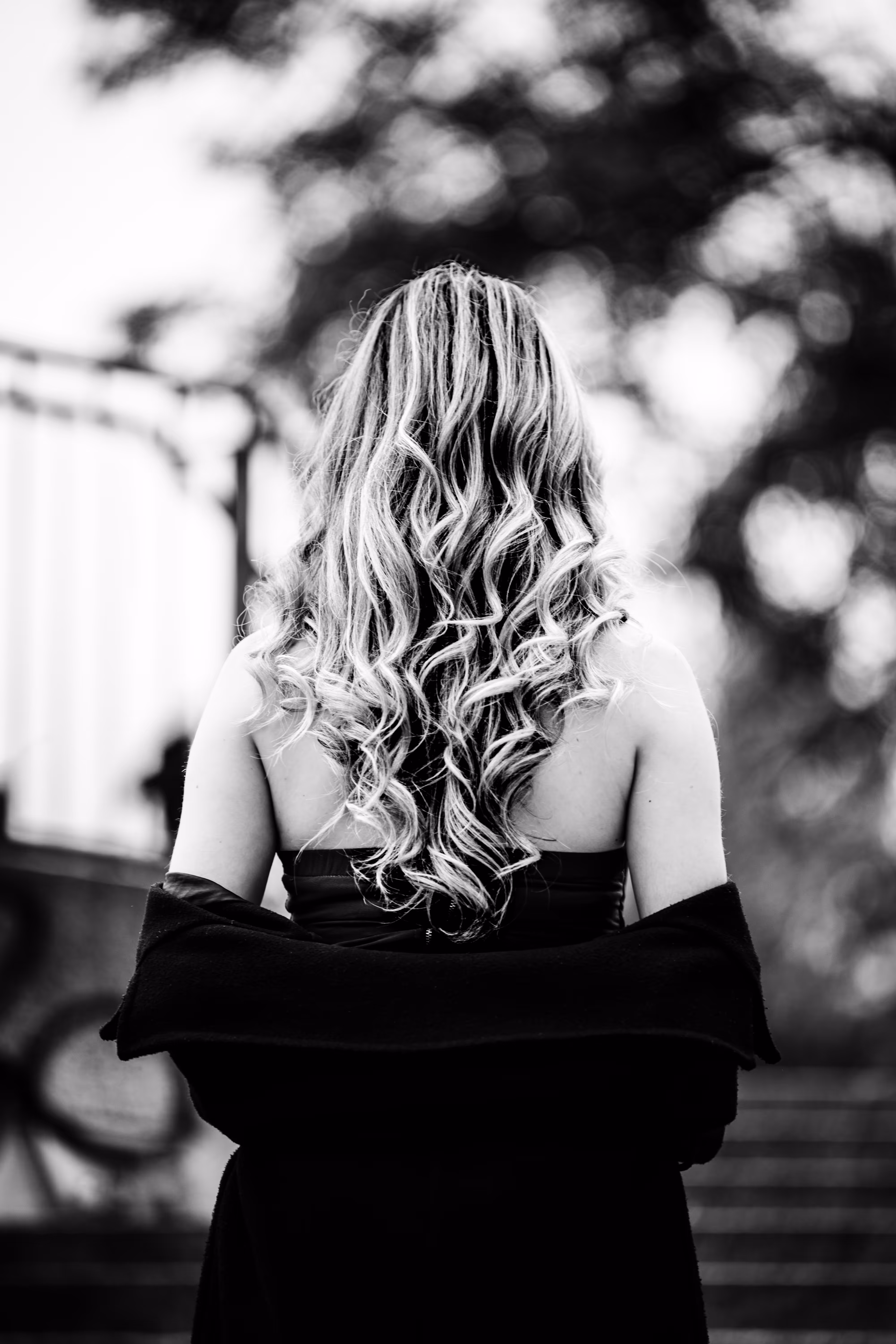 Wie man in unserer Fotogalerie sieht, wirkt das Porträt in Farbe kühl, modern und klar. Die Umgebung ist präsent. Dasselbe Porträt als Schwarz-Weiß-Variante verändert seine Wirkung fundamental: Ohne die Ablenkung durch Farbe tritt die Komposition in den Hintergrund. Der Fokus rückt unweigerlich auf Valentinas Ausdruck und die Formen. Das Porträt wirkt intensiver, zeitloser und die Emotion steht im Mittelpunkt.