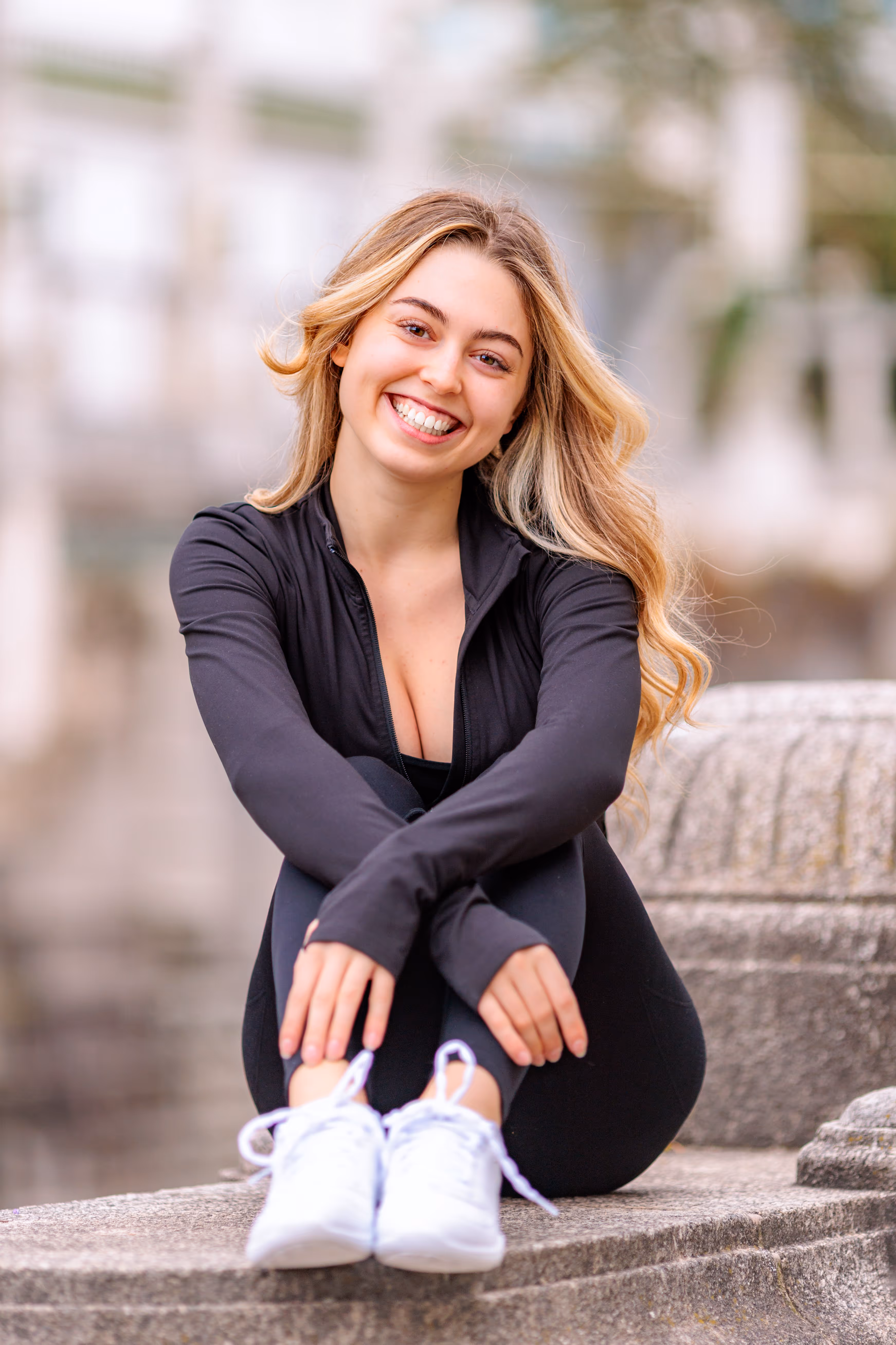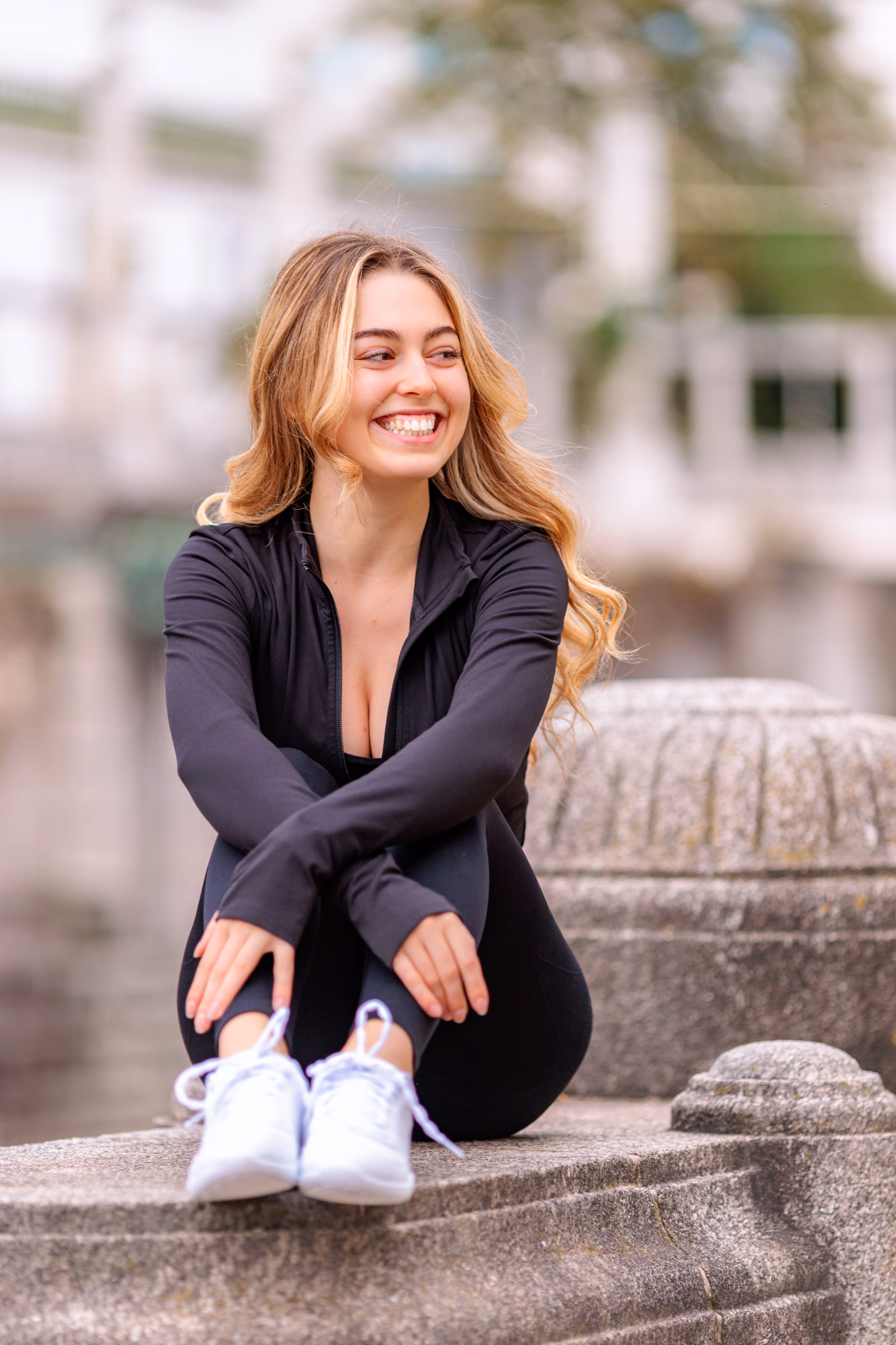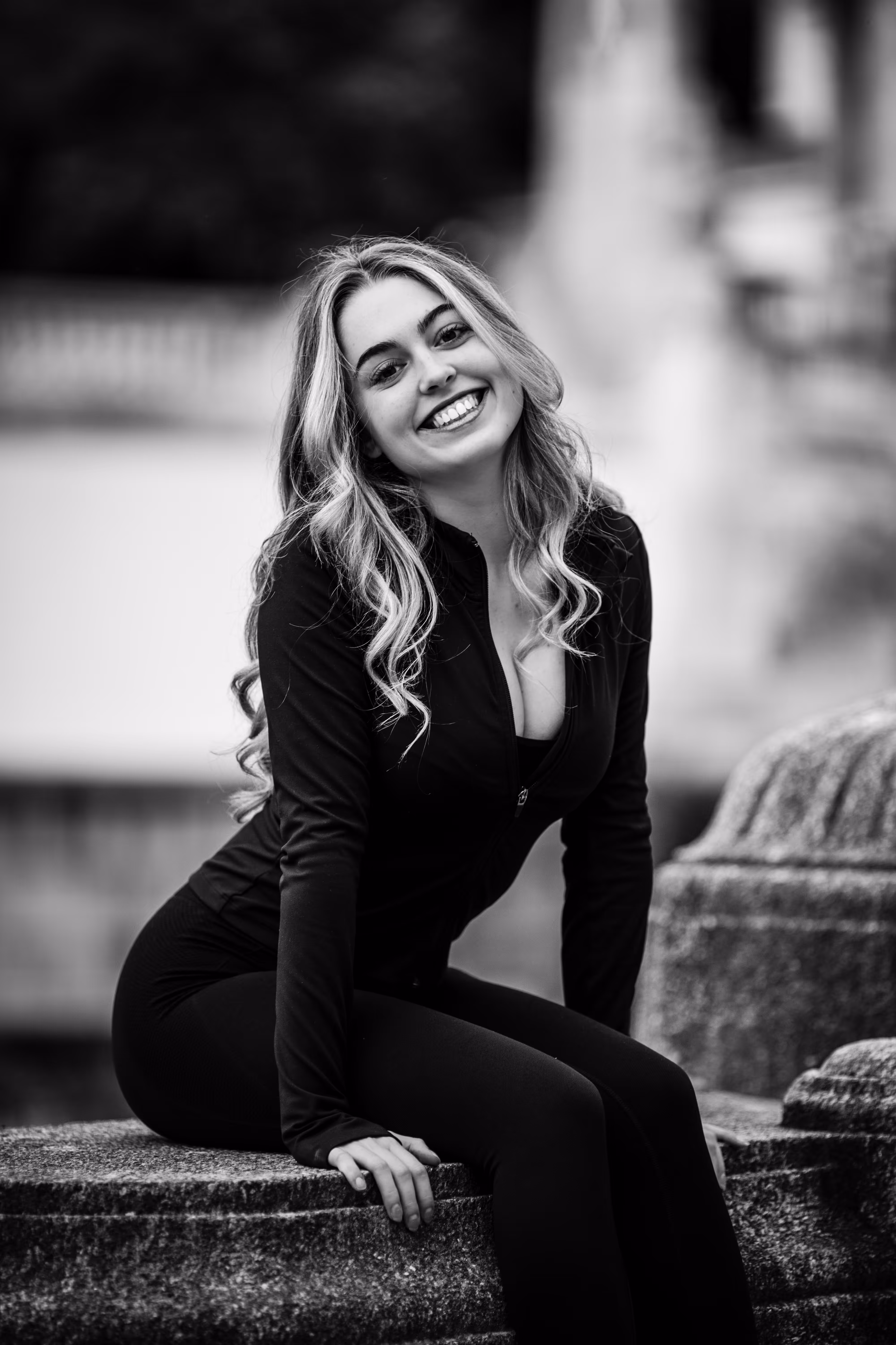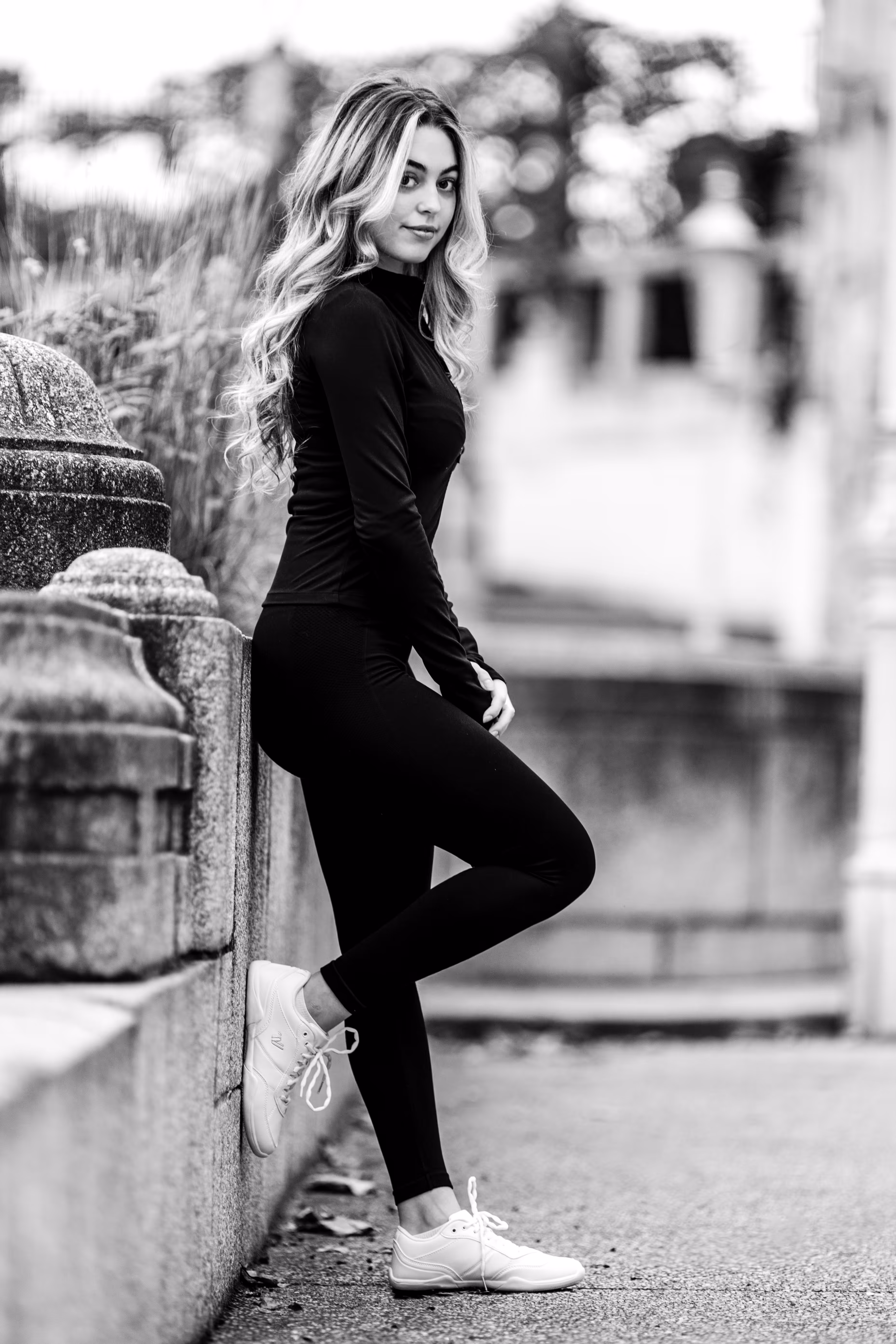 Wie man in unserer Fotogalerie sieht, wirkt das Porträt in Farbe kühl, modern und klar. Die Umgebung ist präsent. Dasselbe Porträt als Schwarz-Weiß-Variante verändert seine Wirkung fundamental: Ohne die Ablenkung durch Farbe tritt die Komposition in den Hintergrund. Der Fokus rückt unweigerlich auf Valentinas Ausdruck und die Formen. Das Porträt wirkt intensiver, zeitloser und die Emotion steht im Mittelpunkt.