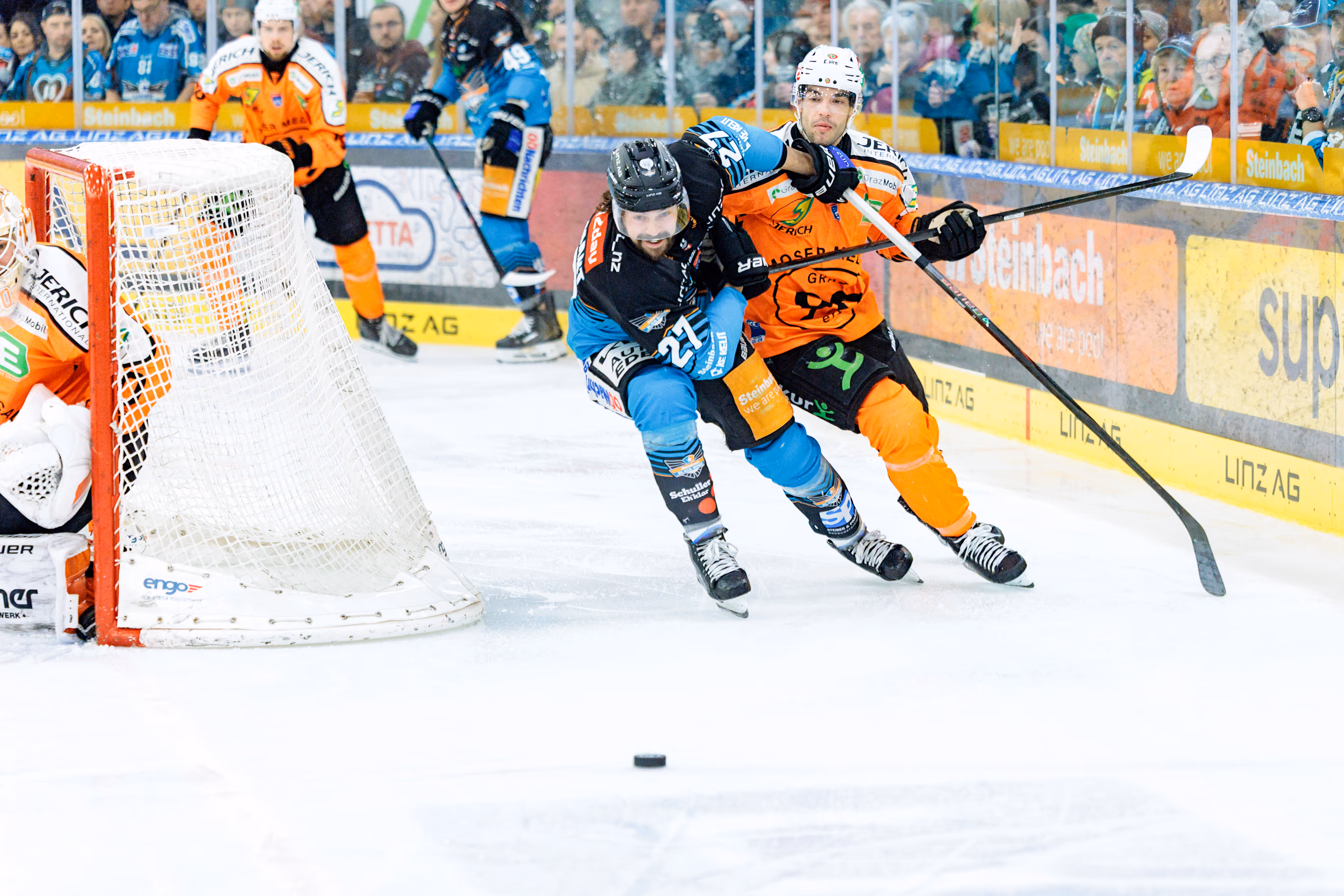 Um alles auf eine Karte zu setzen, nahmen die Linzer kurz vor Schluss ihren Torhüter für einen sechsten Feldspieler vom Eis. Dieses Risiko wurde jedoch nicht belohnt: 14 Sekunden vor der Schlusssirene eroberten die Grazer den Puck, und Collins traf zur endgültigen Entscheidung ins leere Tor. Mit diesem 3:1-Sieg besiegeln die Grazer 99ers eine herausragende reguläre Saison und gehen als Tabellenerster in die entscheidende Phase der Meisterschaft.