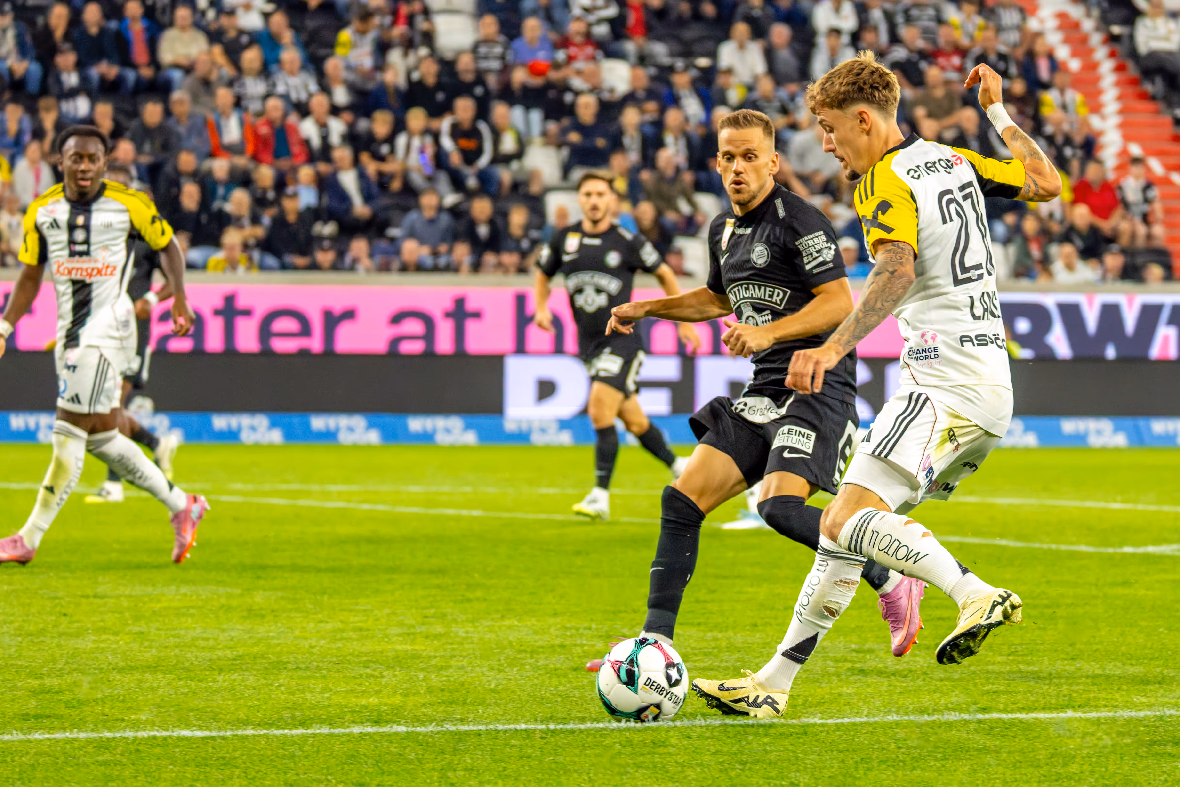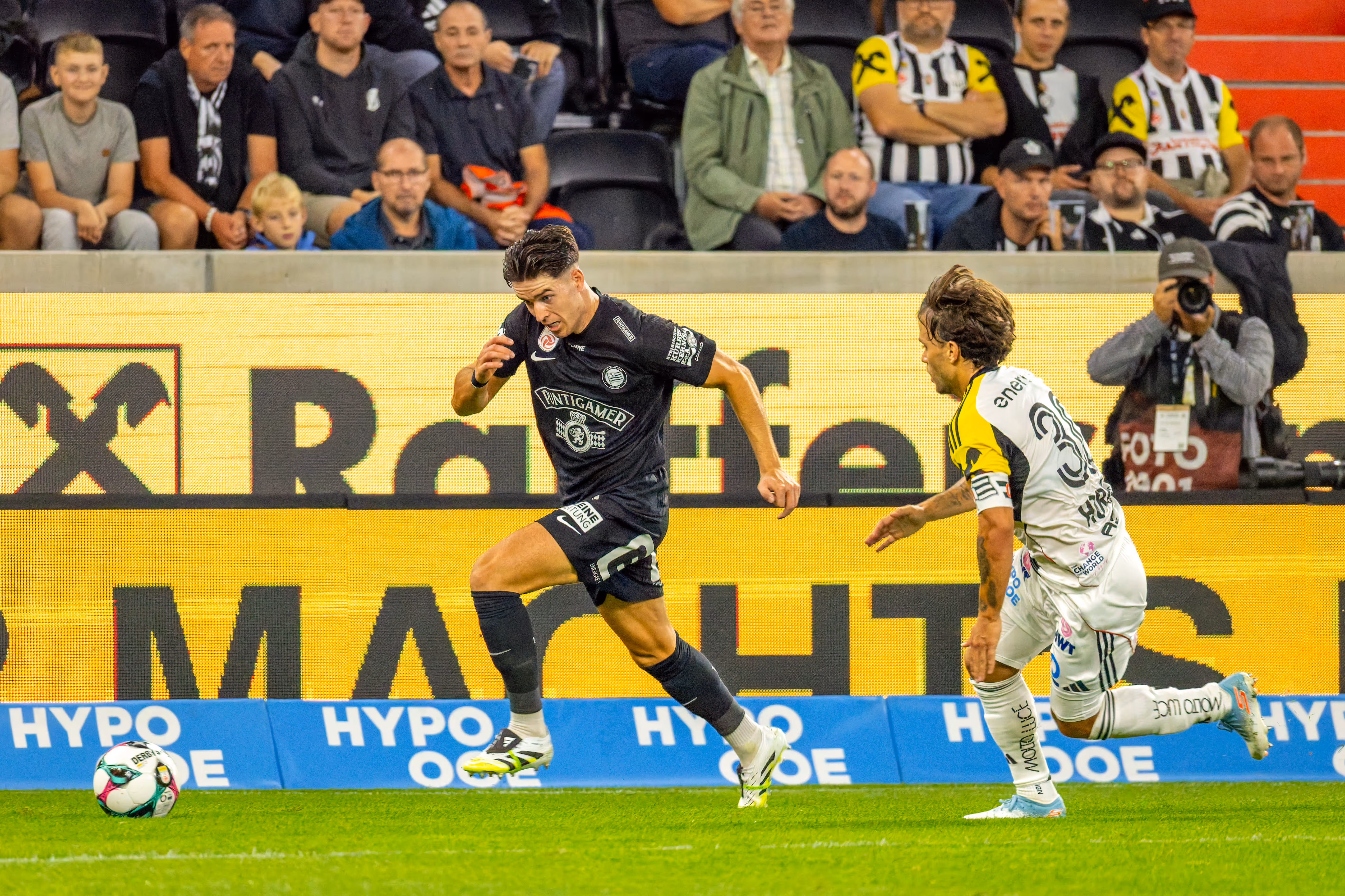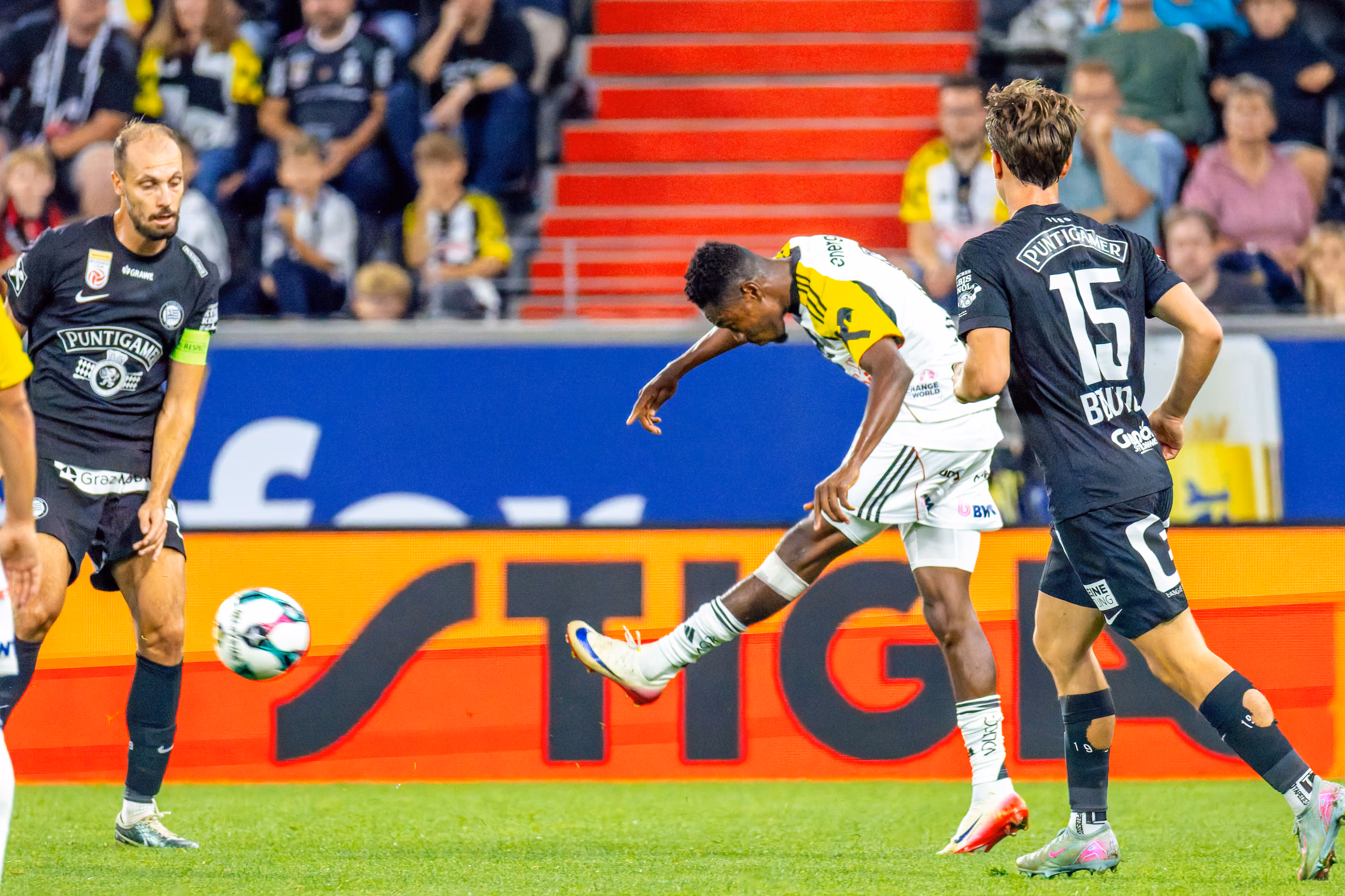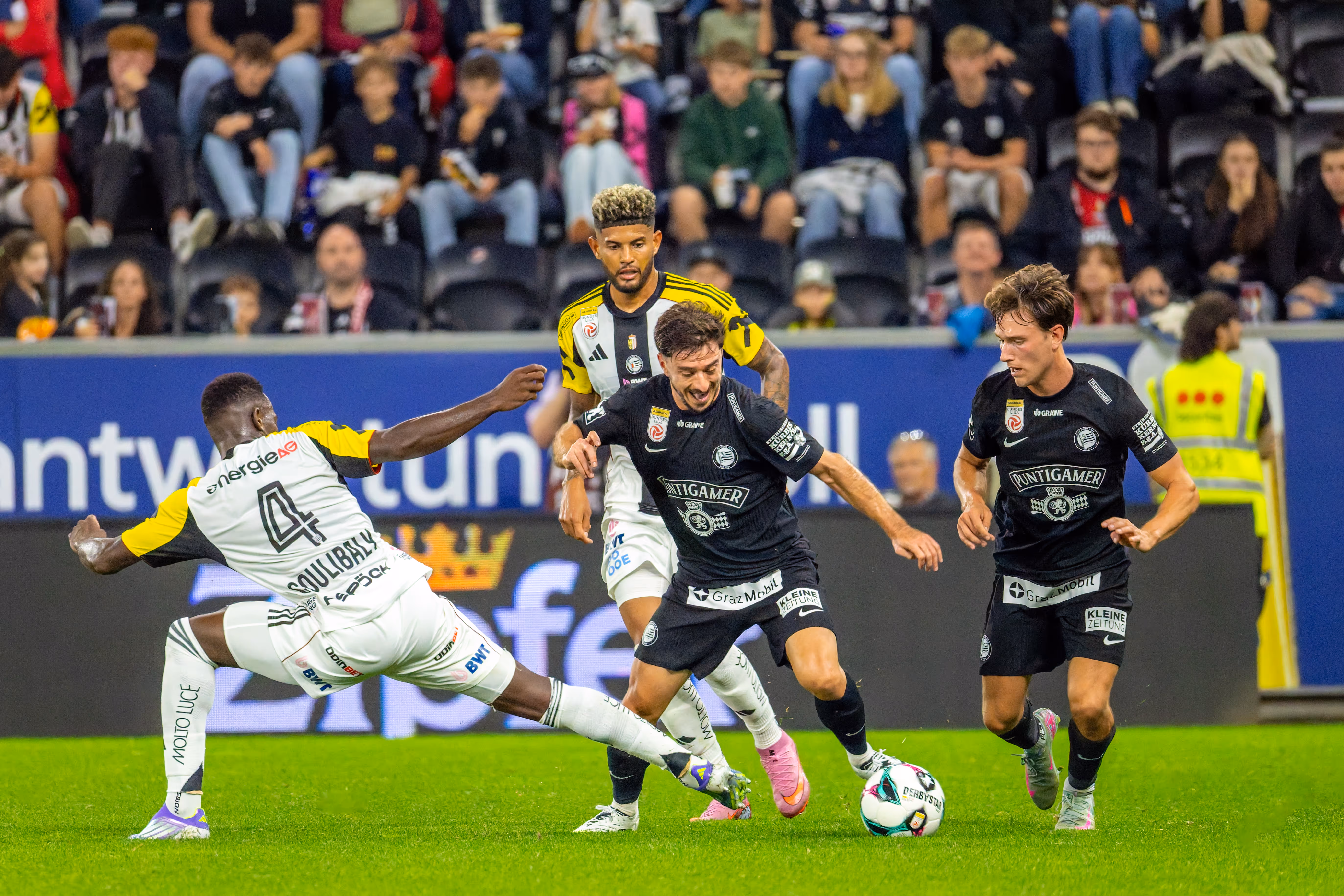 Die neue Saison war kaum angepfiffen, da schlug der Meister aus der Steiermark bereits mit voller Wucht zu. Die Elf von João Sacramento schien von der Intensität der Gäste sichtlich überrascht. Schon in der 9. Minute zappelte der Ball erstmals im Netz: Nach einem Angriff über die linke Seite und einer Kopfballvorlage von Otar Kiteishvili an die Latte, stand Leon Grgic goldrichtig und staubte zur frühen Führung ab.