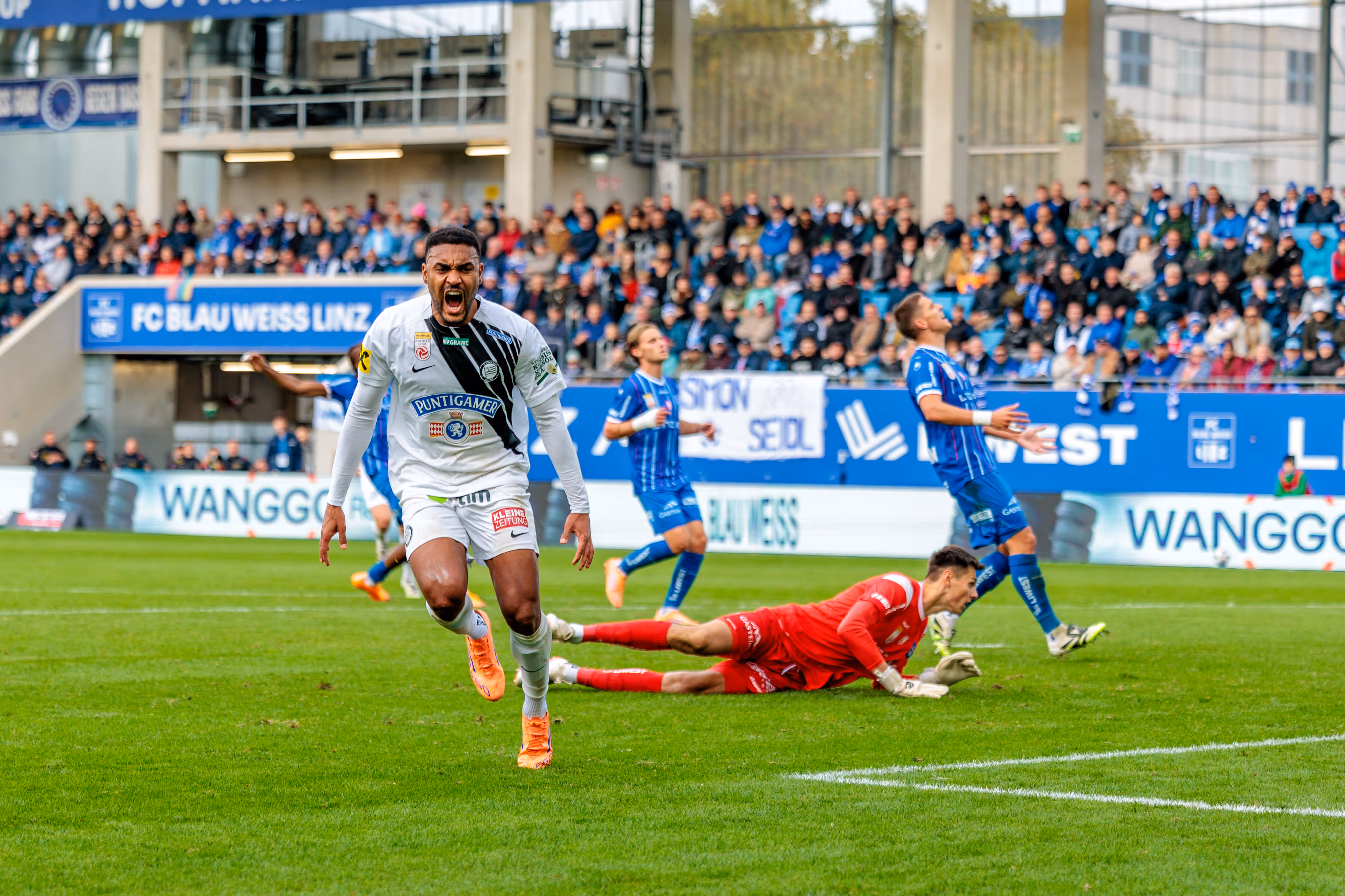 Doch Blau-Weiß gab sich nicht auf. Nur eine Minute nach dem 1:3 versenkte Shon Weissman eine Flanke – offenbar mit der Schulter – zum 2:3-Anschlusstreffer (74.). Das Donauparkstadion bebte, und die Hausherren warfen alles nach vorne. Sie belohnten sich in der 84. Minute: Ein Distanzschuss von Pirkl krachte an die Latte, doch Doums Fofana reagierte am schnellsten und staubte zum 3:3-Ausgleich ab.