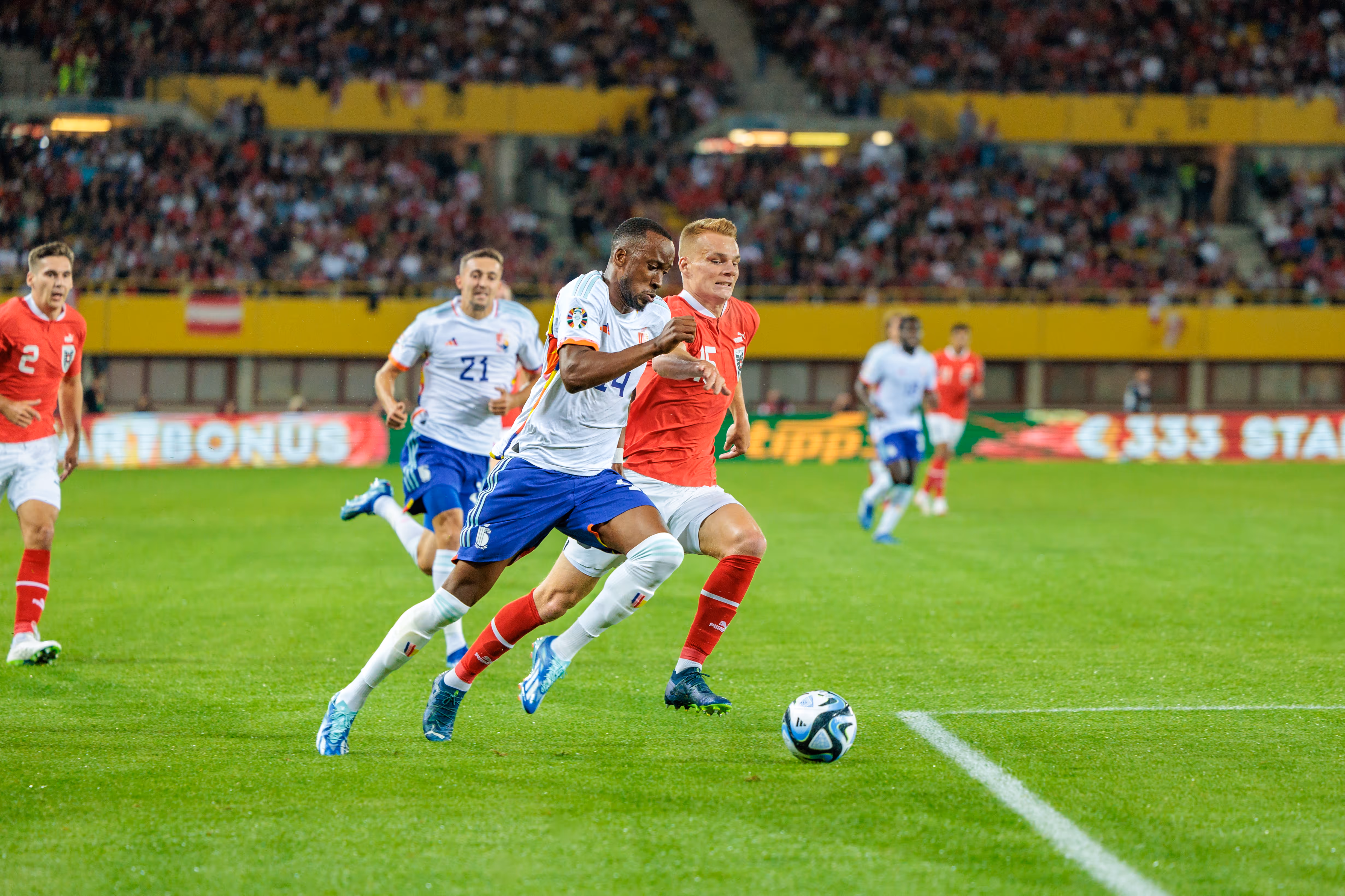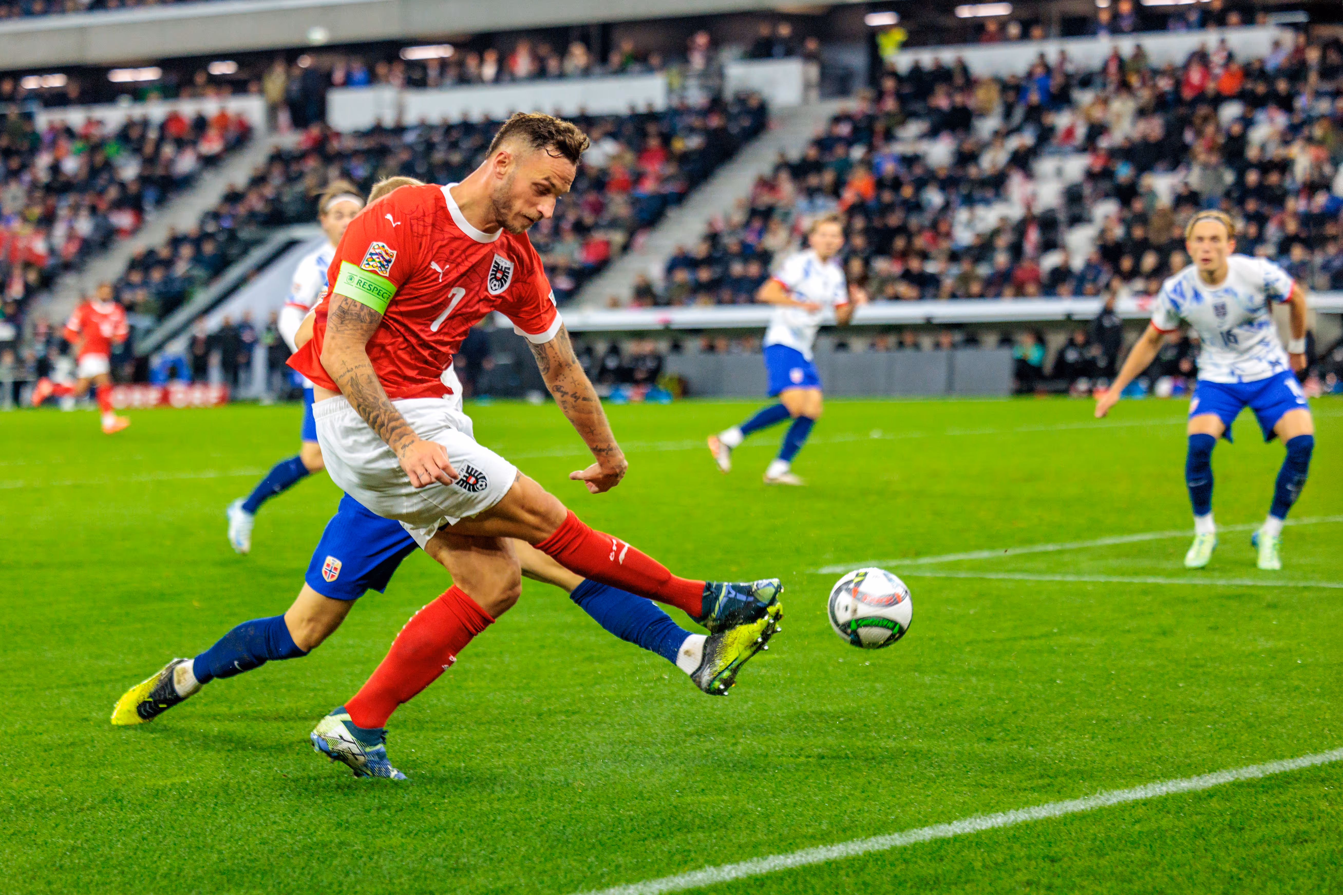 Der Österreichische Fußball-Bund, kurz ÖFB, beherbergt das österreichische Fußball-Nationalteam. Es bereitet mir große Freude, die aufregenden Momente und die Atmosphäre während Länderspielen fotografisch festzuhalten.