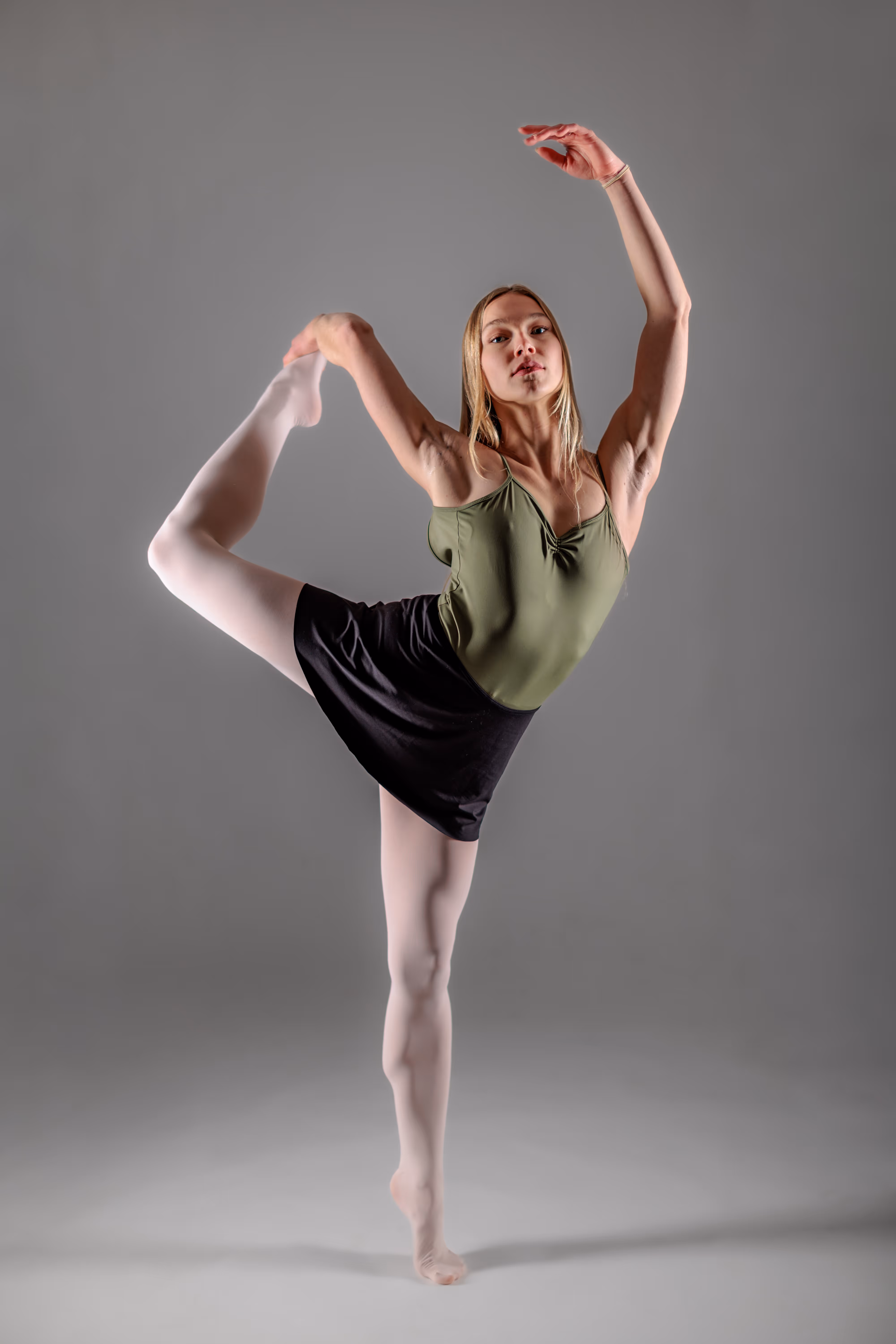 Zum Abschluss der Session wurde es dynamisch. Dass Kathrin über eine exzellente Körperbeherrschung verfügt, wird in den bewegungsorientierten Aufnahmen deutlich. Fernab von statischen Posen sehen wir hier Momente voller Kraft und Balance.