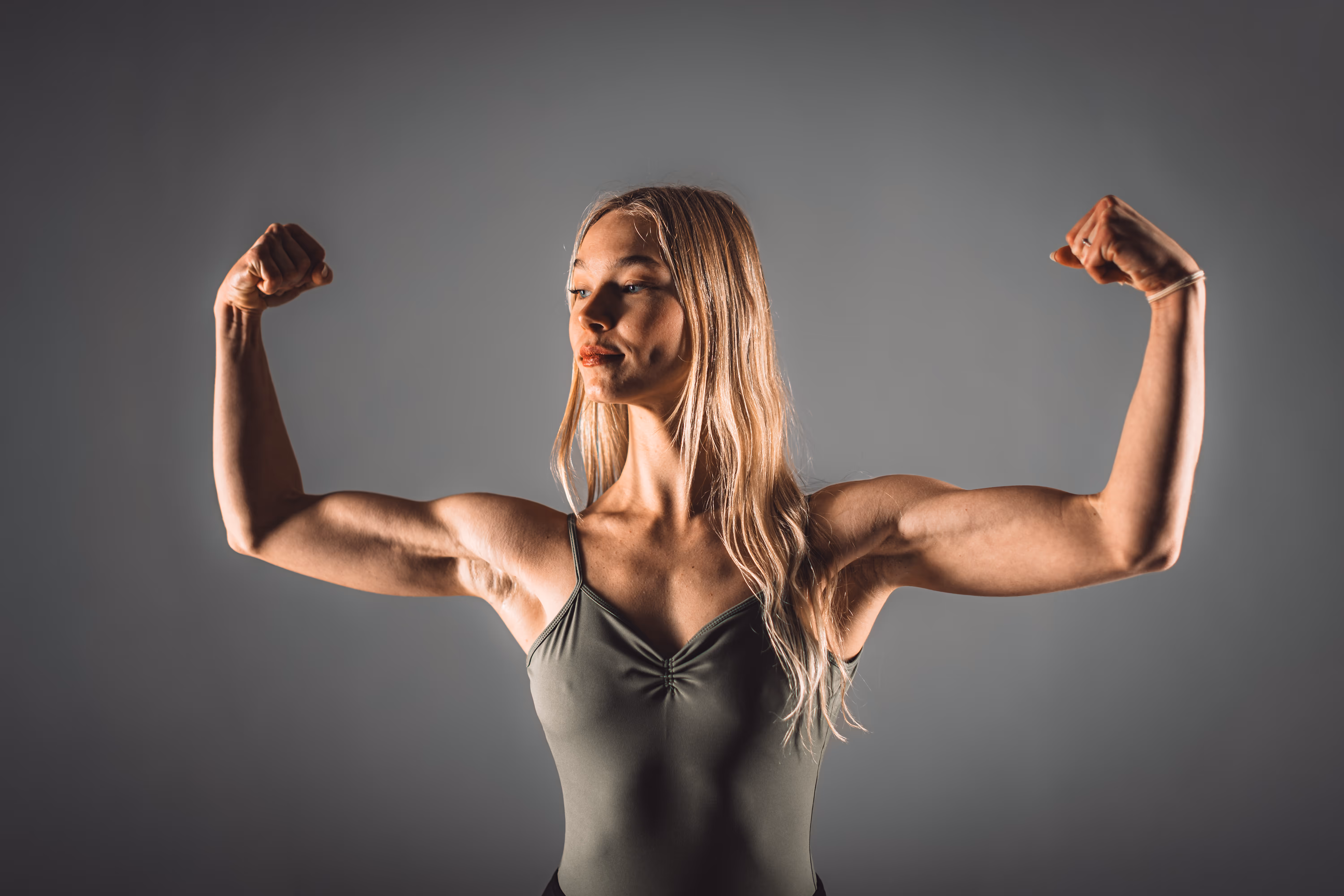 Besonders hervorzuheben sind die Aufnahmen, die choreografische Elemente integrieren. Sie verleihen der Serie eine fast skulpturale Qualität. Auch das Spiel mit Licht und Schatten in den “Low Key”-Aufnahmen (dunkler Hintergrund, gezielte Beleuchtung) sorgt für eine dramatische Note, die die Muskulatur und die Spannung im Körper perfekt herausarbeitet. Es ist dieser Mix aus Anmut und Stärke, der das Portfolio abrundet und zeigt, dass ein gelungenes Fotoshooting immer mehr ist als nur das Drücken des Auslösers – es ist Inszenierung von Charakter.