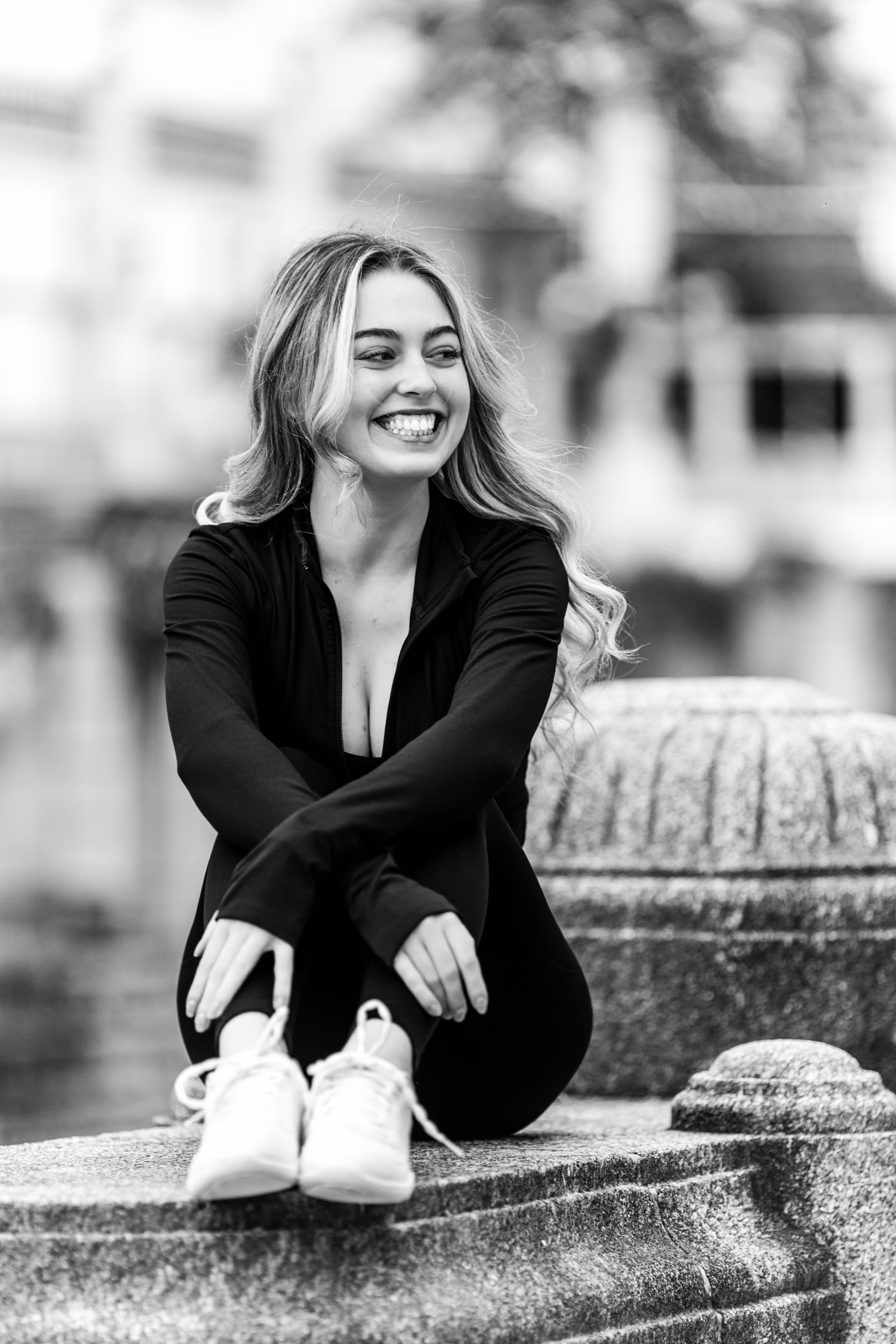 Wie man in unserer Fotogalerie sieht, wirkt das Porträt in Farbe kühl, modern und klar. Die Umgebung ist präsent. Dasselbe Porträt als Schwarz-Weiß-Variante verändert seine Wirkung fundamental: Ohne die Ablenkung durch Farbe tritt die Komposition in den Hintergrund. Der Fokus rückt unweigerlich auf Valentinas Ausdruck und die Formen. Das Porträt wirkt intensiver, zeitloser und die Emotion steht im Mittelpunkt.