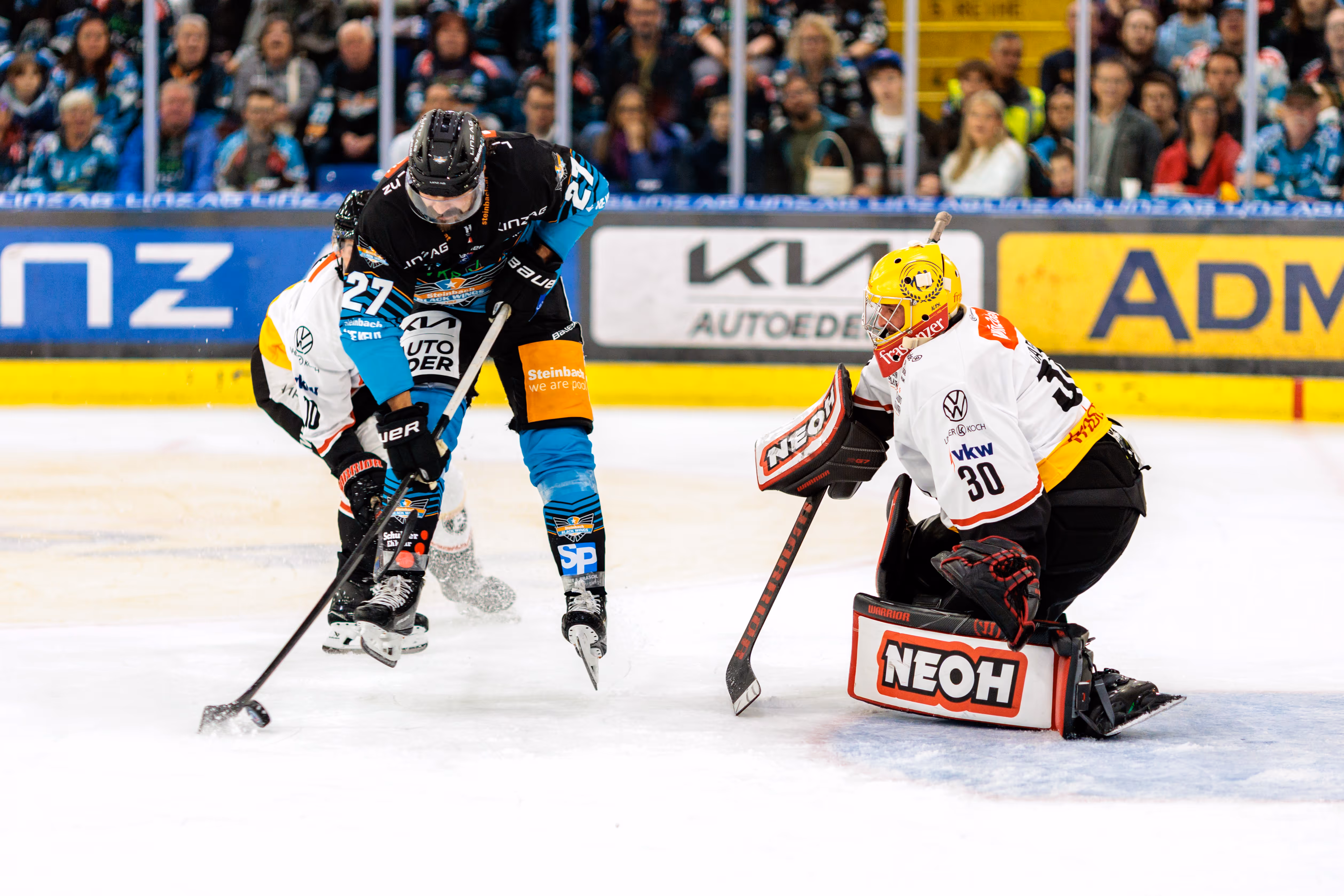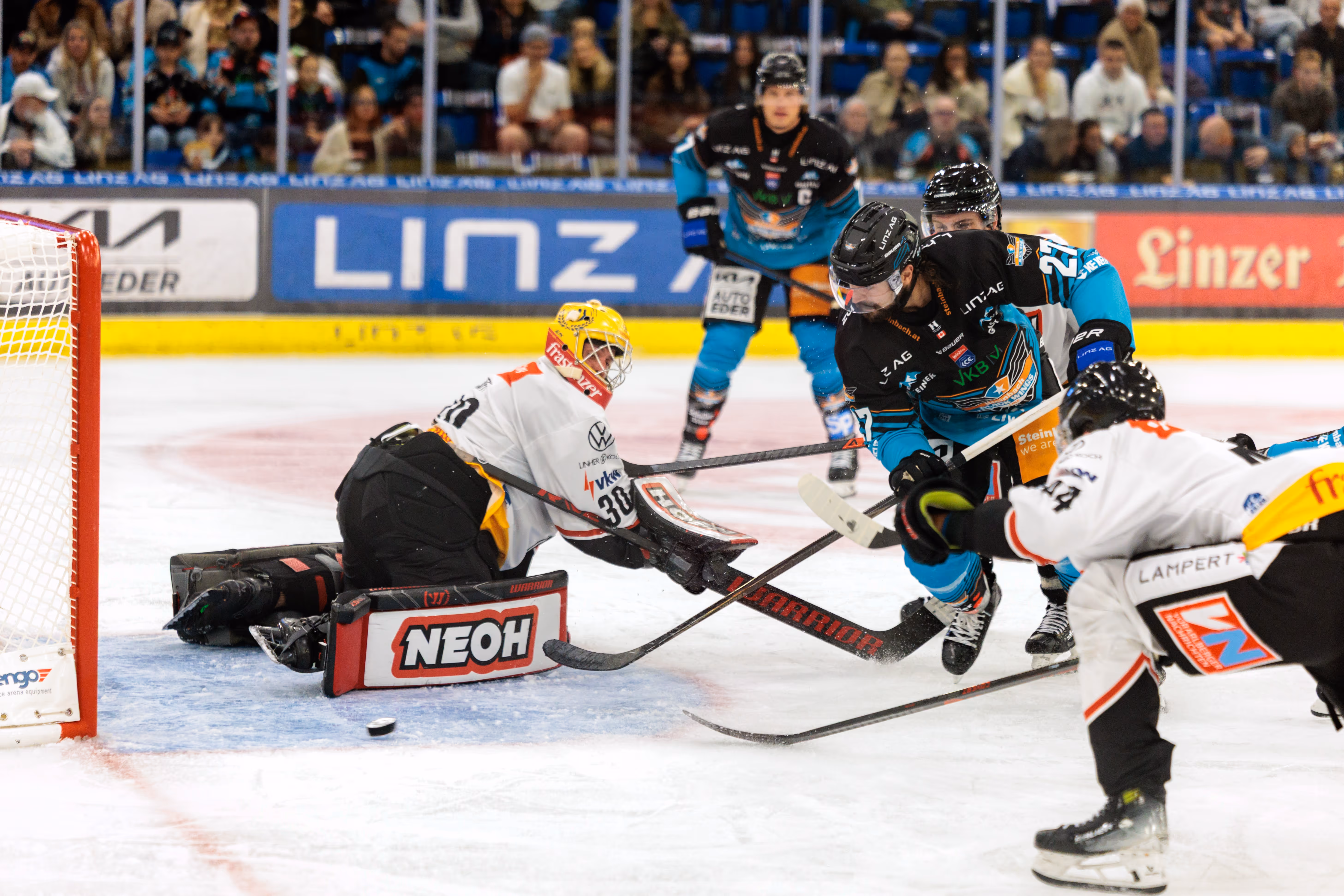 Die Linzer, die nach der starken Halbfinal-Teilnahme in der Vorsaison erneut die Top-4 anvisieren, machten von der ersten Sekunde an klar, wer Herr im Haus ist. Die Partie war noch keine Minute alt, da zappelte die Scheibe bereits im Netz der Vorarlberger. Shawn St-Amant nutzte einen schnellen Gegenstoß eiskalt zur Blitztführung für die Hausherren. Die Pioneers wirkten beeindruckt, während die Black Wings die Spielkontrolle übernahmen. Ein Lattentreffer in der 10. Minute unterstrich die Linzer Dominanz, bevor Neuzugang Travis Barron bei seinem Debüt mit einem platzierten Schuss auf 2:0 erhöhte (17.).