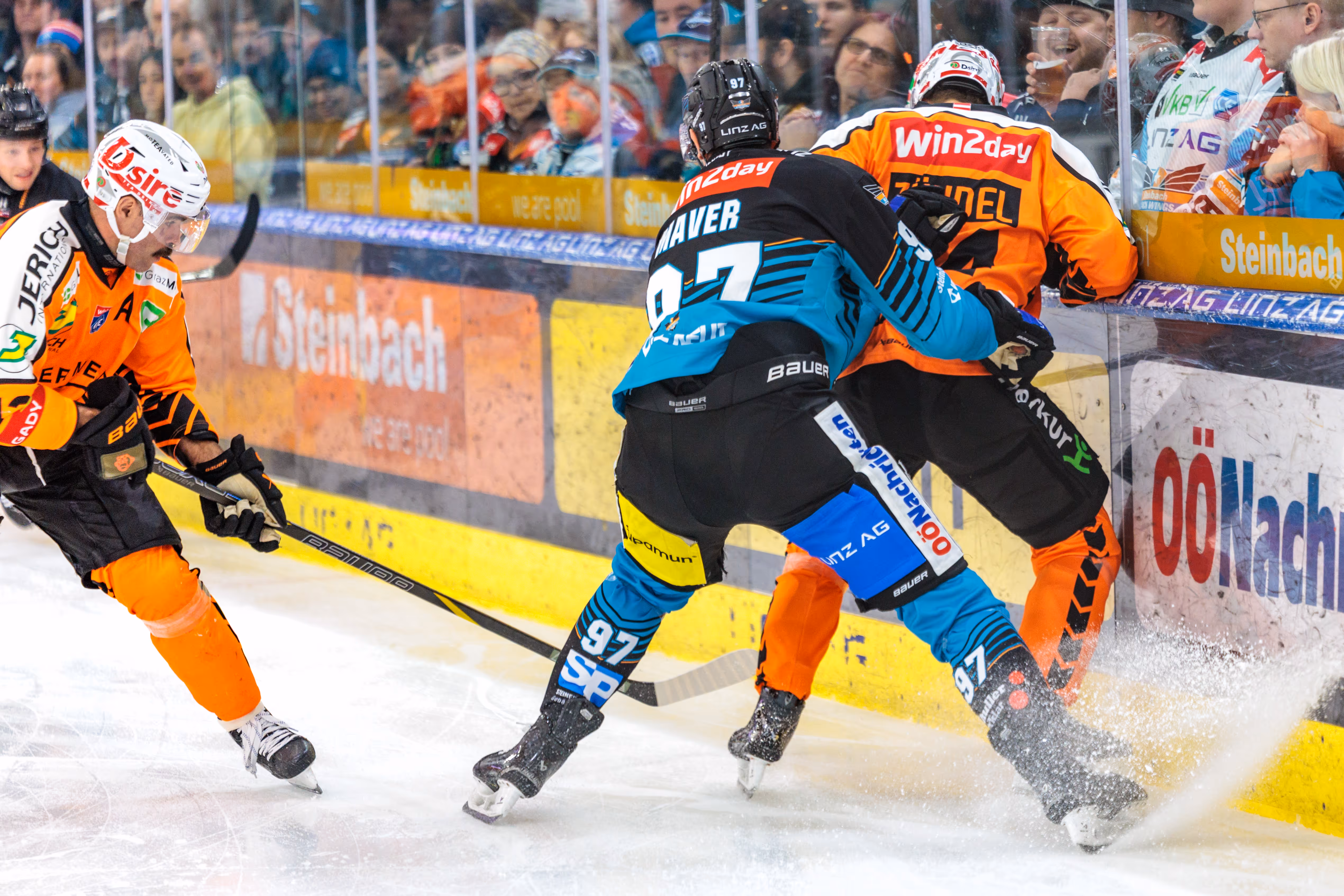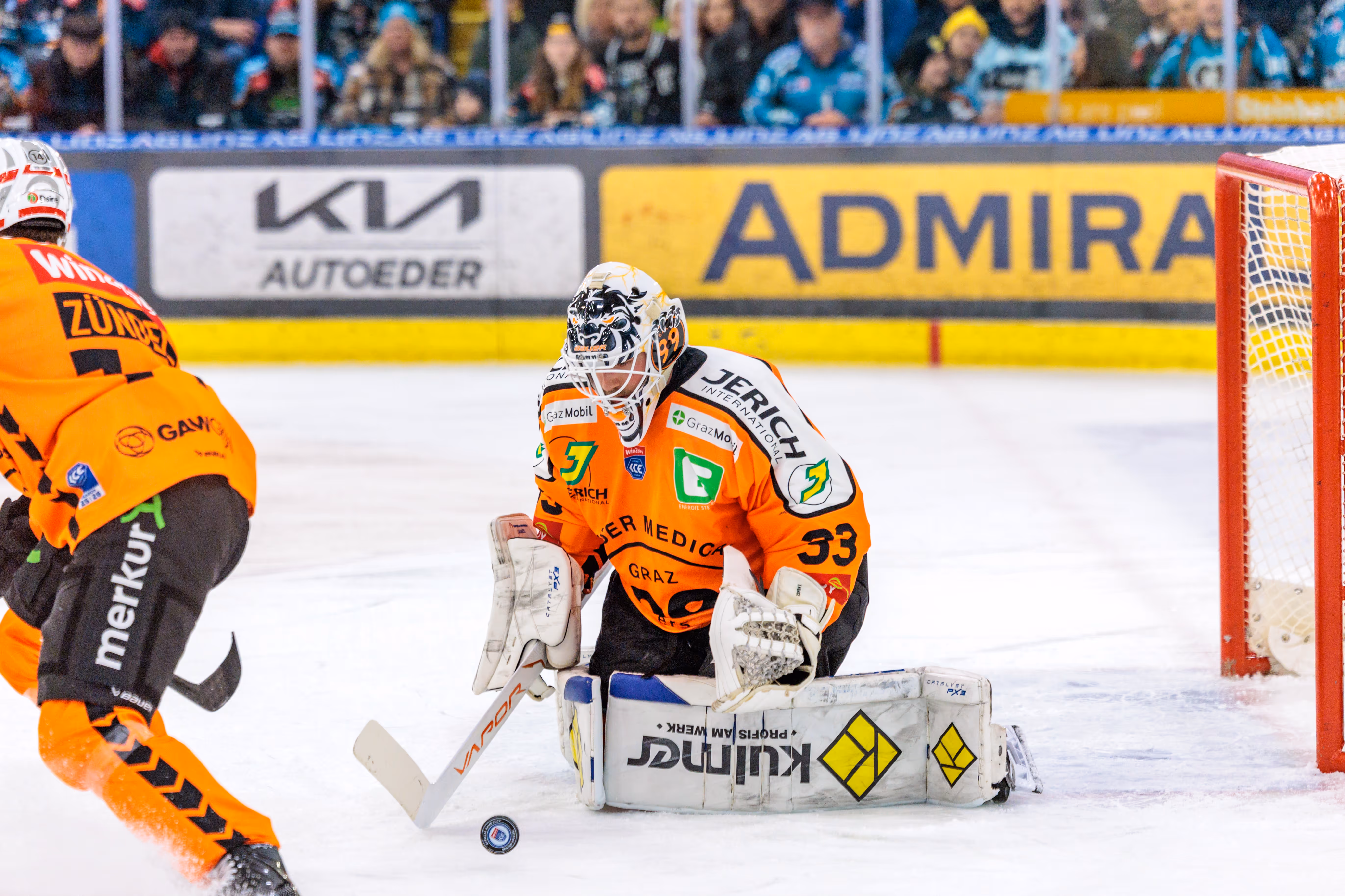 Das Schlussdrittel wurde zum wahren Krimi. Zunächst gelang den Grazern der längst überfällige Ausgleich: Paul Huber traf eine Sekunde vor Ablauf einer Überzahl (42.). Doch die Black Wings, die diese Punkte dringender brauchten als Luft zum Atmen, schlugen zurück. In der 49. Minute nutzte Ryan Mackinnon ebenfalls ein Powerplay und brachte die Linzer Halle mit dem 2:1 zum Beben.