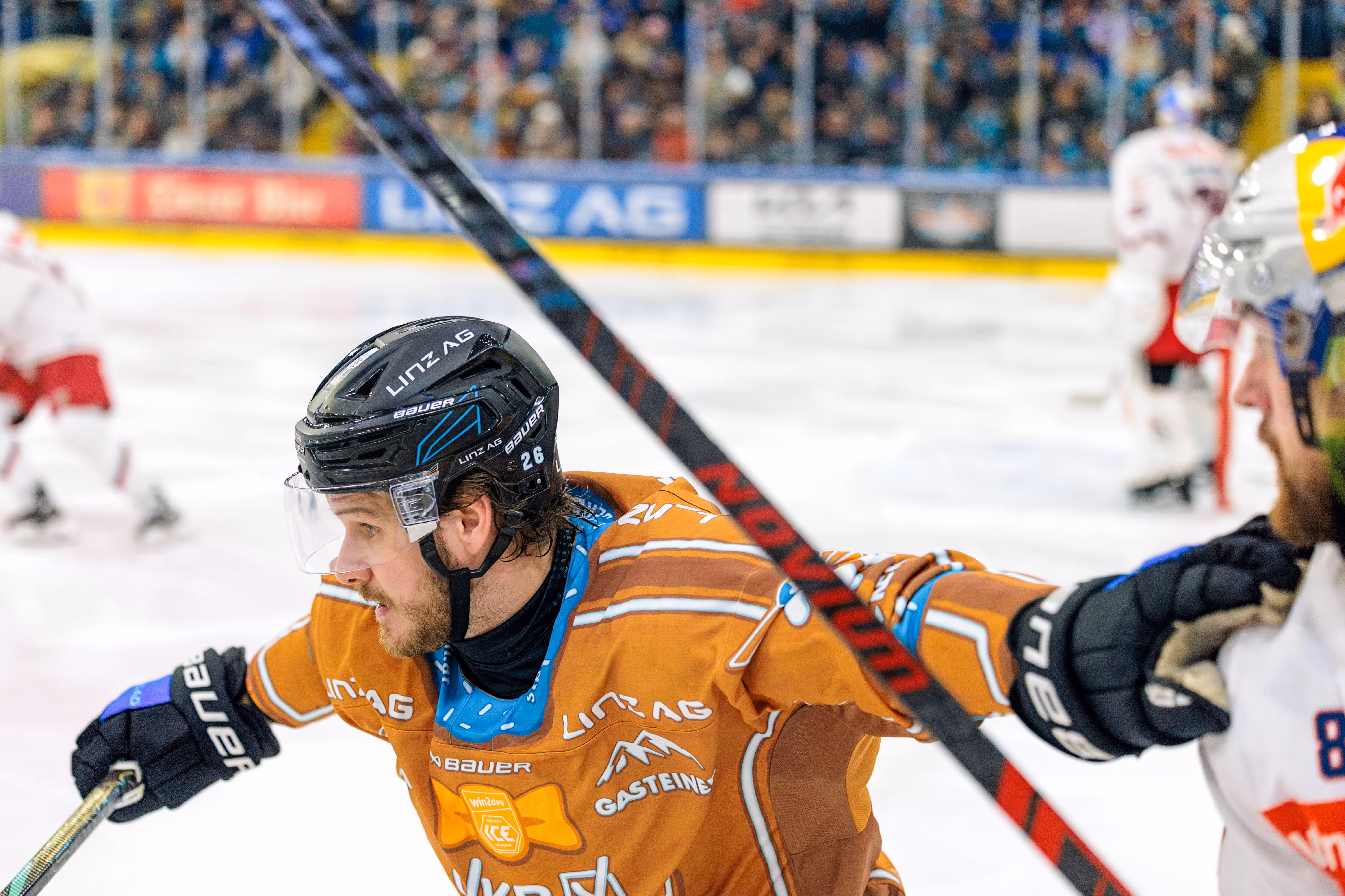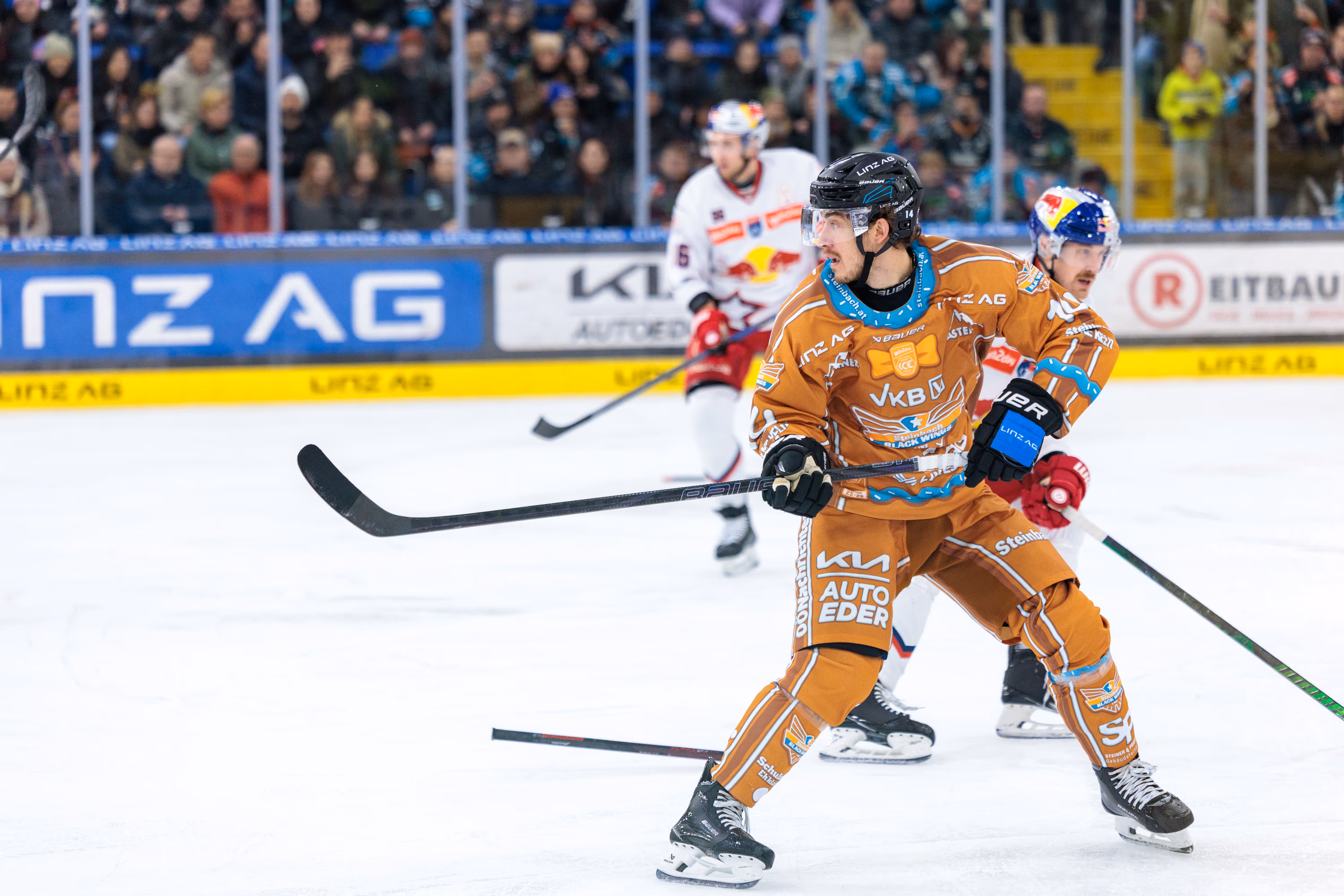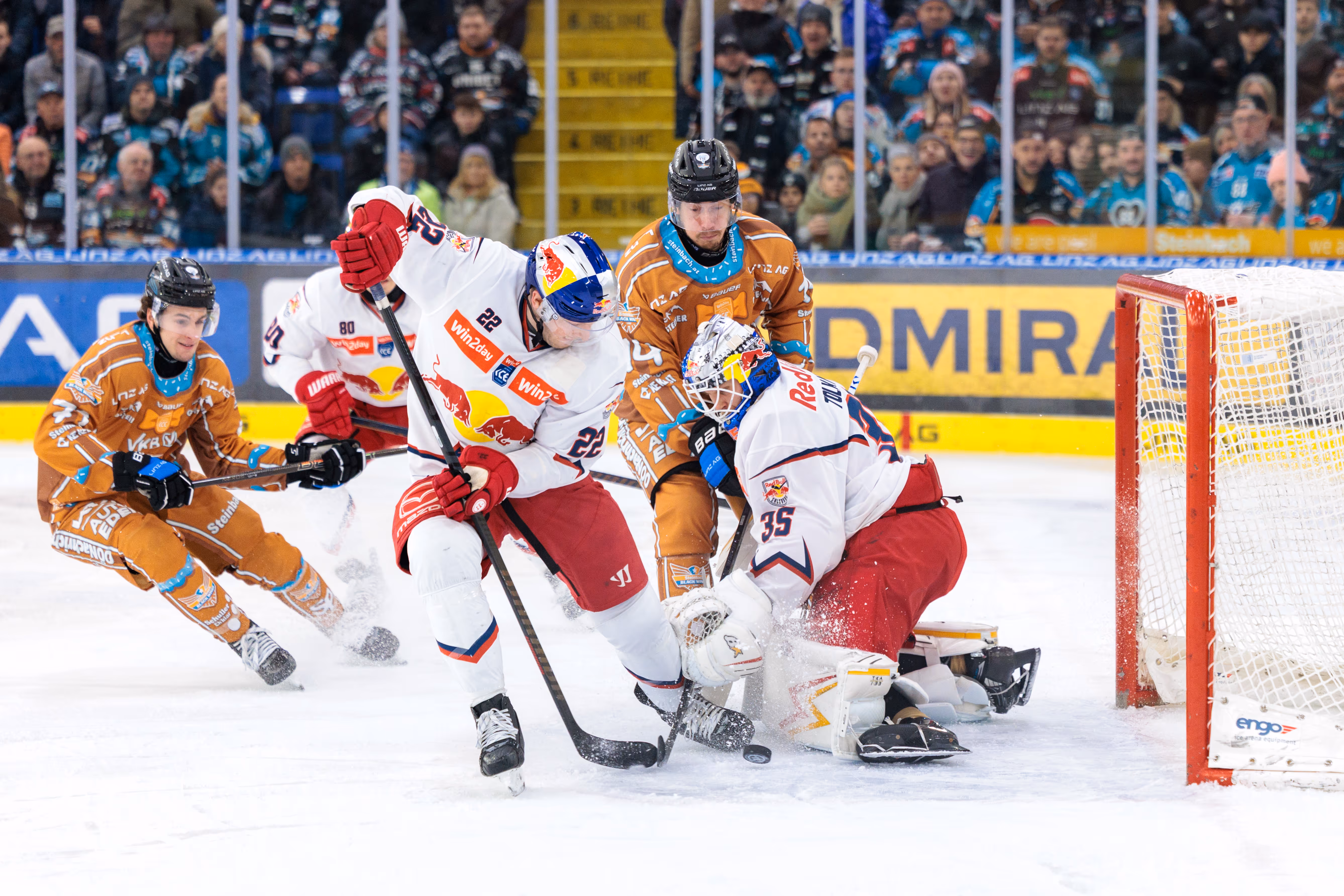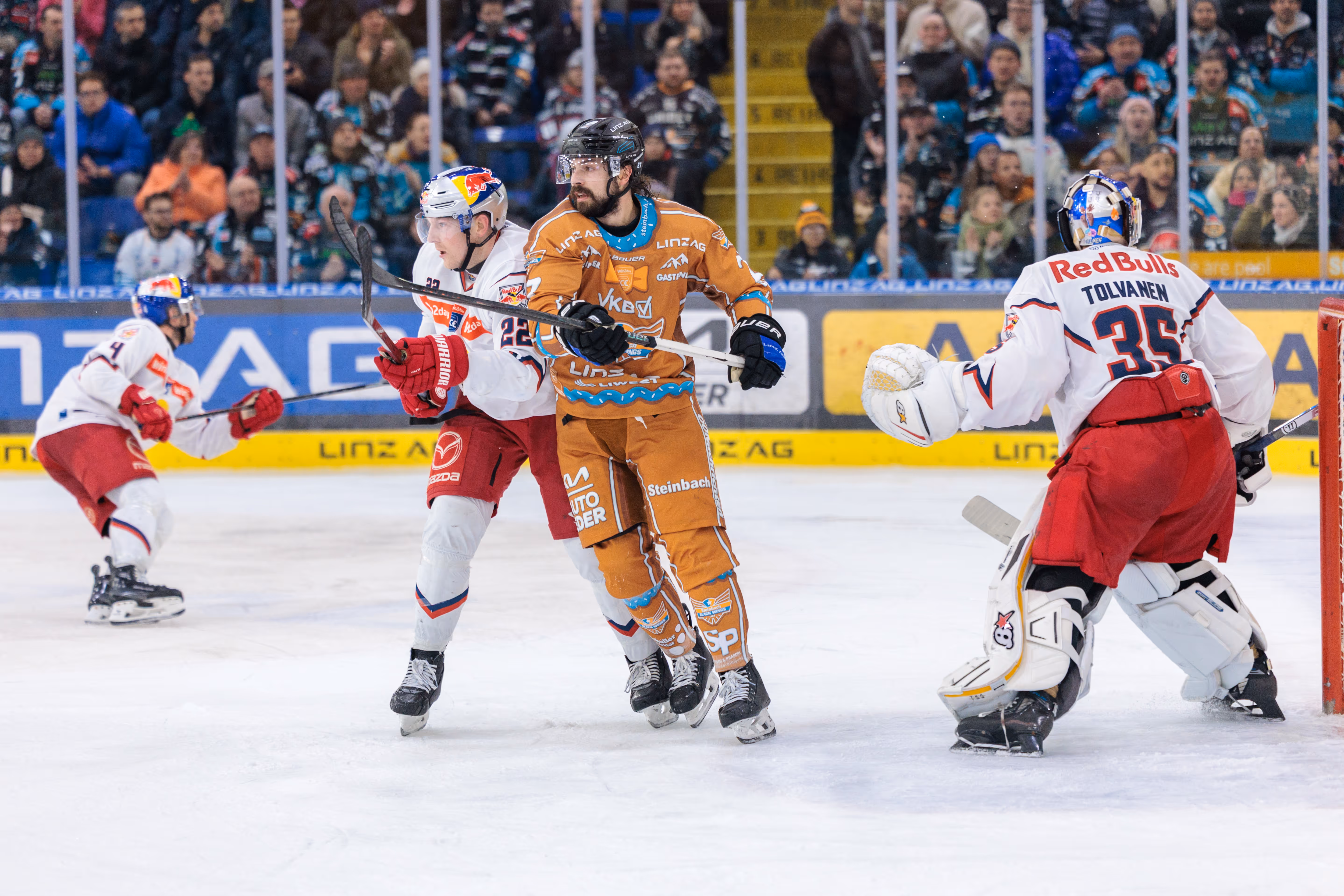 Die Linz AG Eisarena kochte, als Graham Knott den Puck zum 2:2-Ausgleich über die Linie drückte und die Fans hinter der Plexiglasscheibe in Ekstase versetzte. Es war der Höhepunkt einer Partie, die alles hielt, was ein Duell gegen den amtierenden Meister aus Salzburg versprach: Tempo, Härte und Emotionen pur bis zur letzten Sekunde.